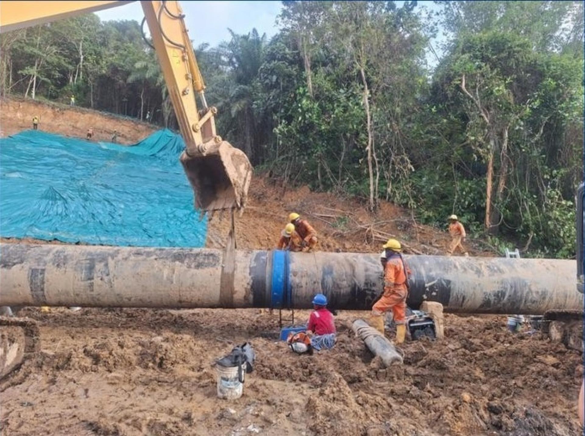 甘榜巴當米圖斯主供水管道 連接工程完成