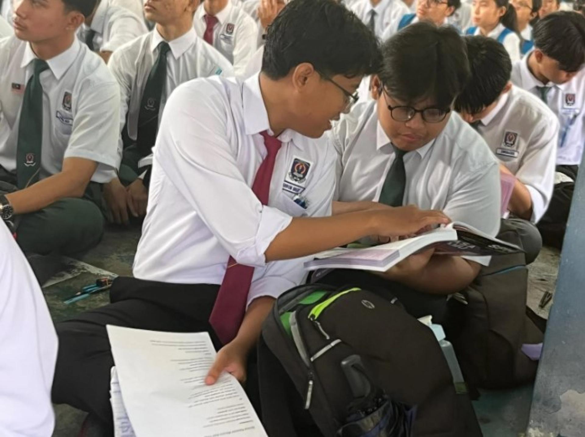 朋尼逊政中的 SPM 考生在马来文笔试开始前认真温习功课。