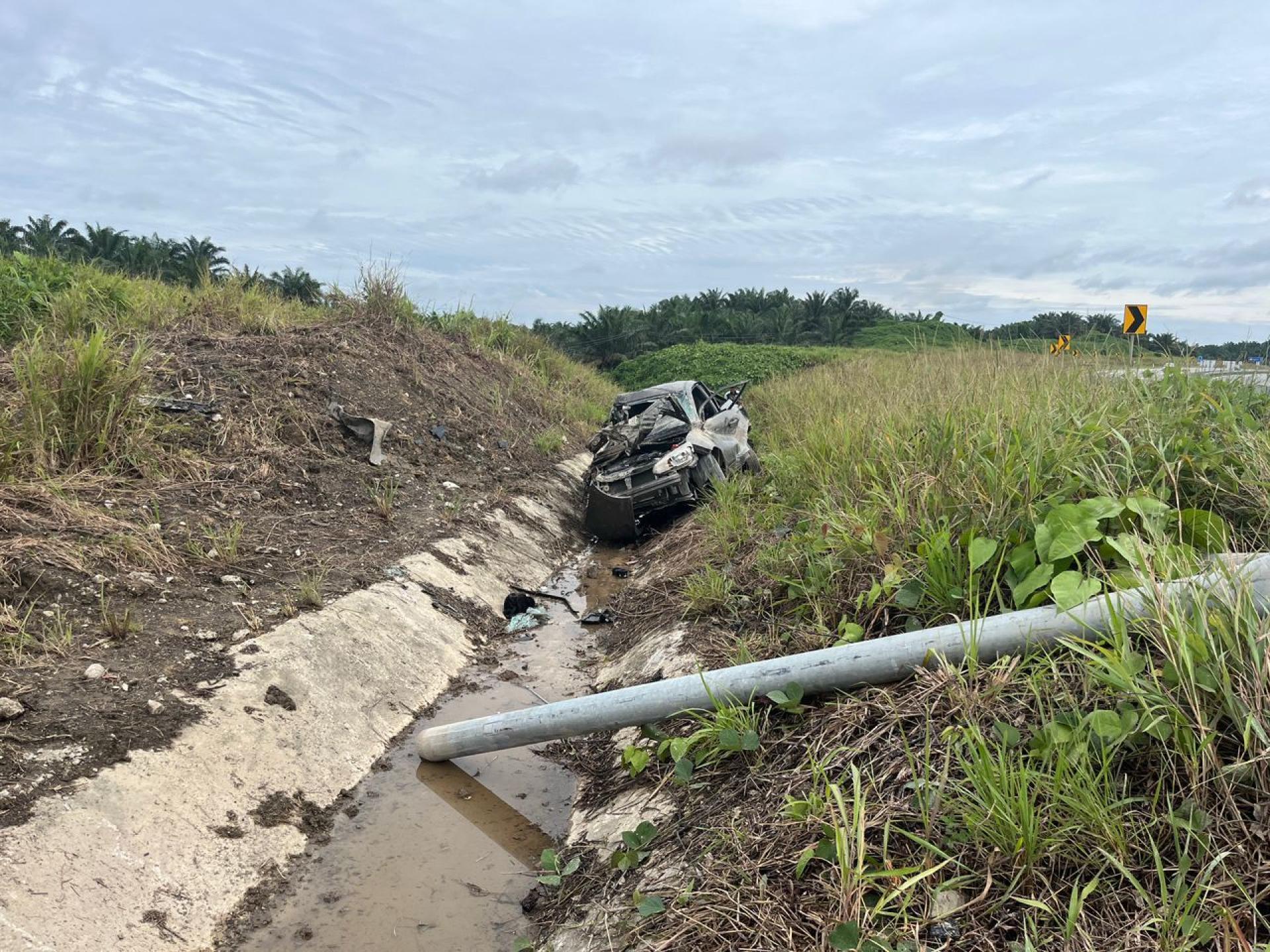 这起致命车祸于今早约7时50分,发生在靠近石山(Batu Niah)哥沙园(Kosa Estate)路段。根据警方初步调查,死者当时从石山方向驶往美里,在行经泛婆大道美里—民都鲁(Bintulu-Miri)路段时,疑因失控导致车辆冲出路面,猛烈撞上路旁的道路指示牌。