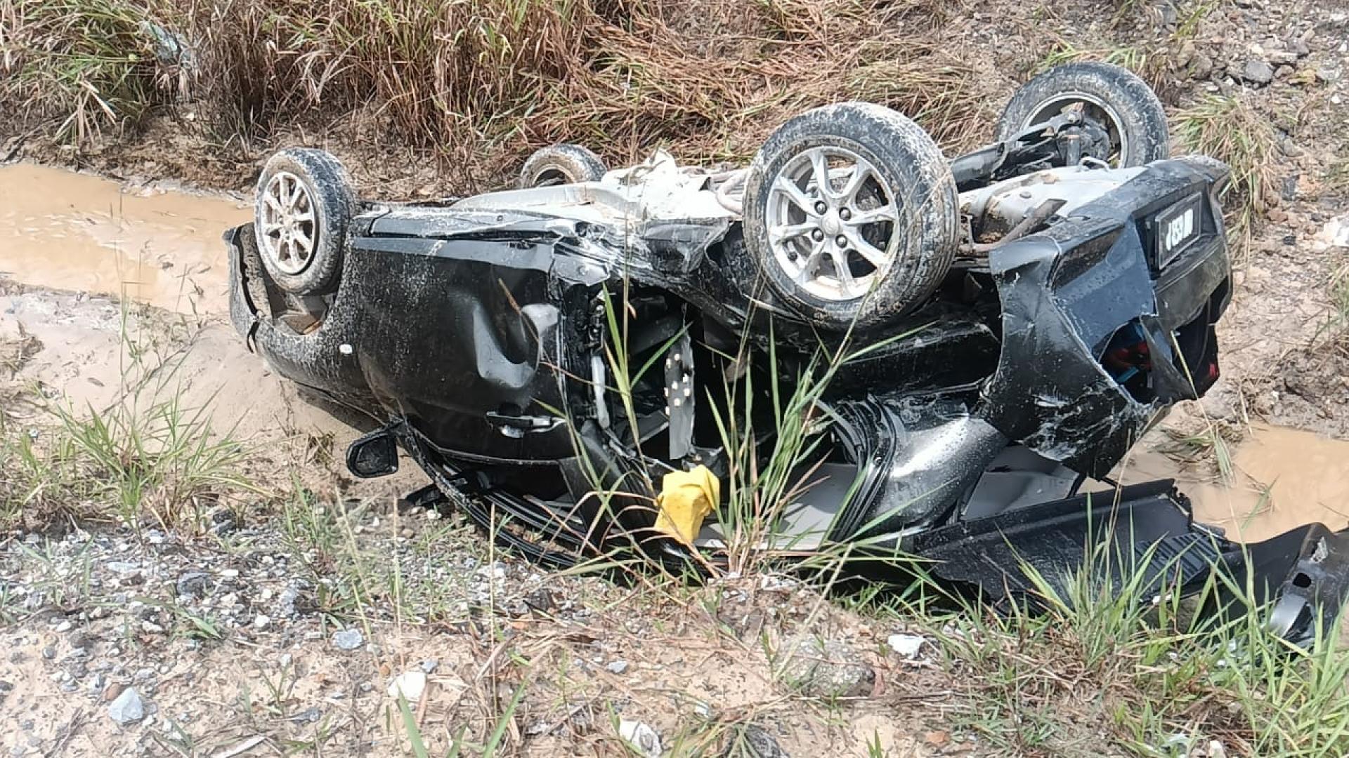 (美里9日讯)泛婆大道马鲁帝路口附近今午发生一宗涉及单一车辆的交通意外,一辆轿车失控翻覆坠入沟渠,造成一名男子当场身亡,另一名3岁男童受伤送院治疗。