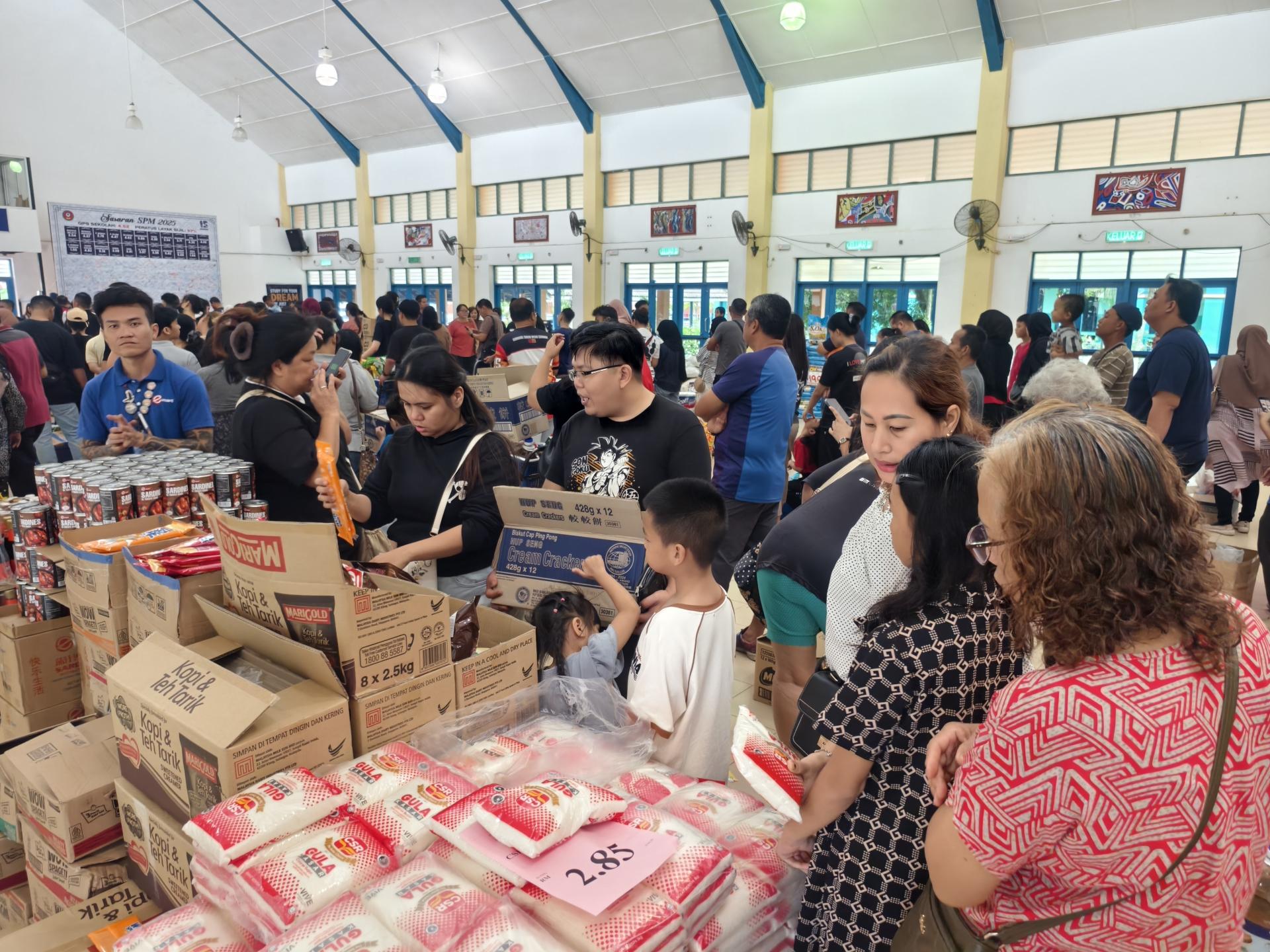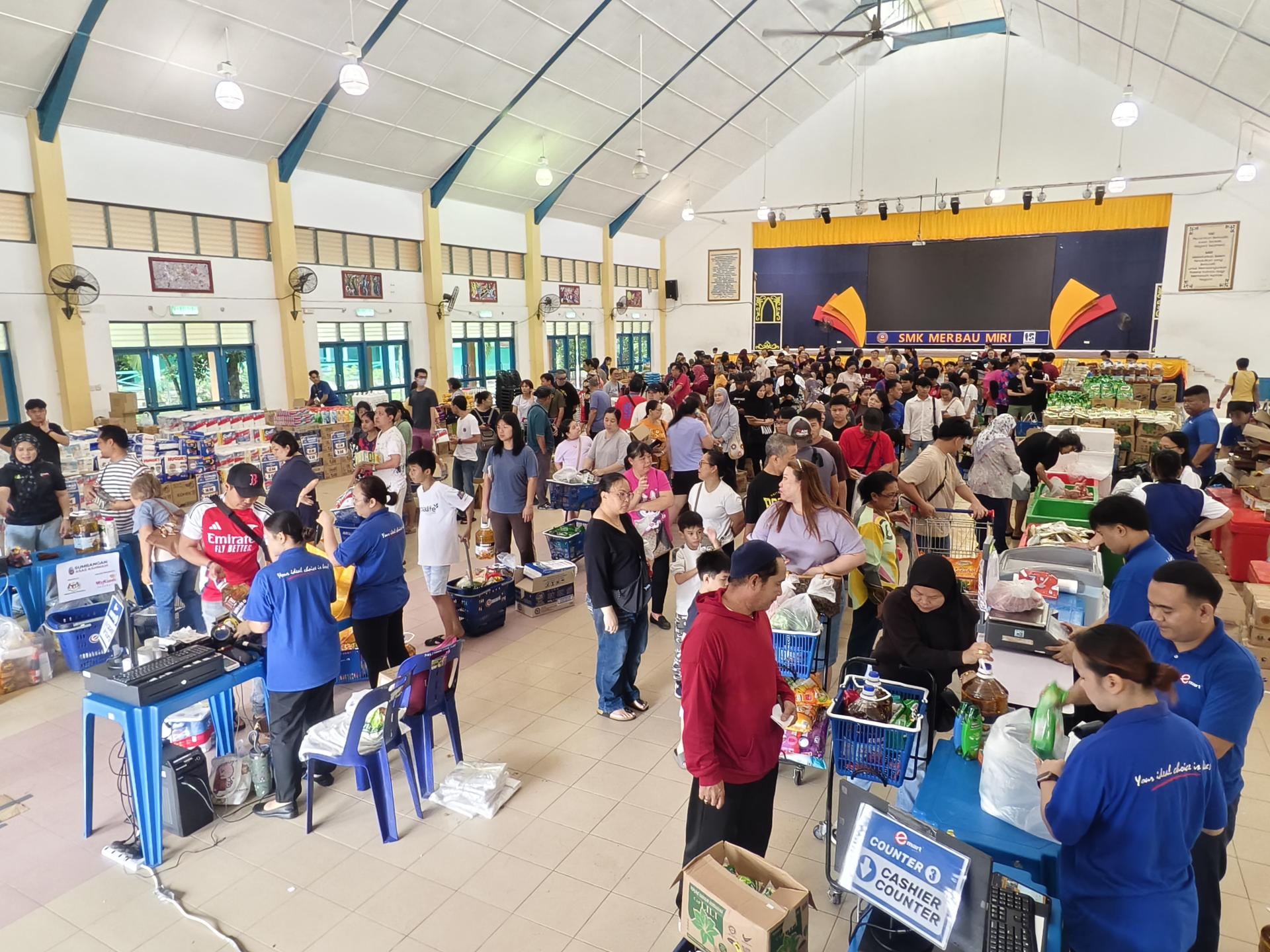 “这项活动由国内贸易及生活成本部(KPDN Miri)协助举办,现场共有39种日常用品销售,包括米、糖、食用油、面条、鸡蛋、鸡肉及肉类等,价格比市价便宜约30%,有效减轻居民的日常开销压力。”