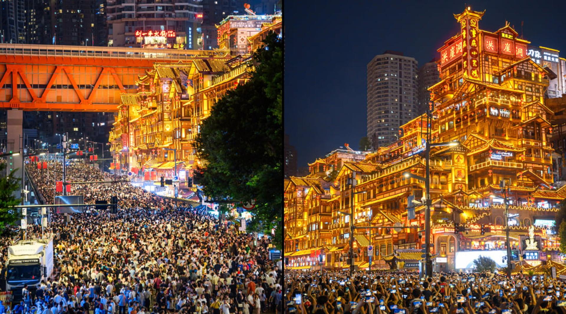 [China National Day Holiday] Crowds Flock to Hongya Cave in Chongqing