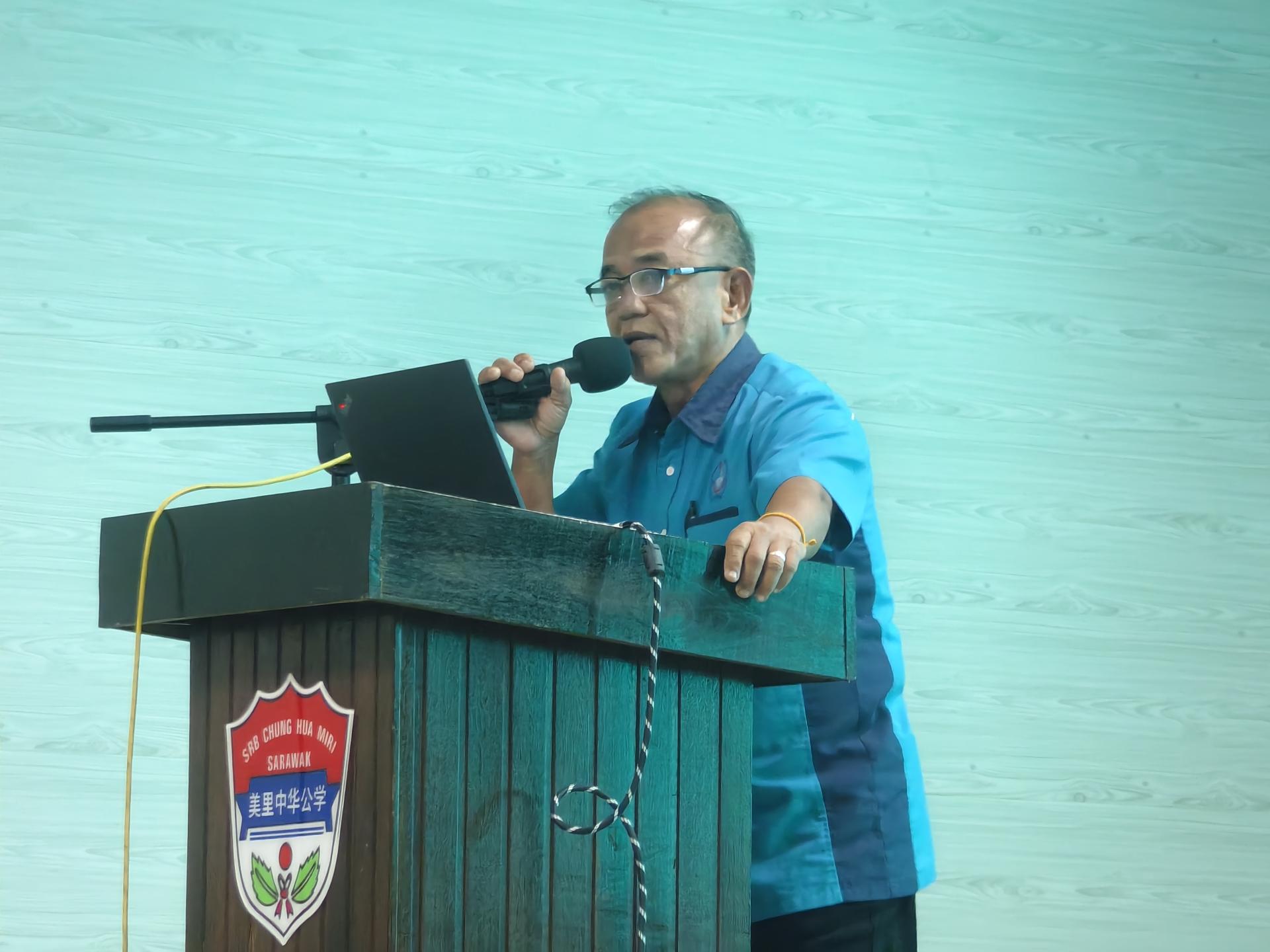 砂拉越教育厅华校督学郑珪诸于美里站进行分享。