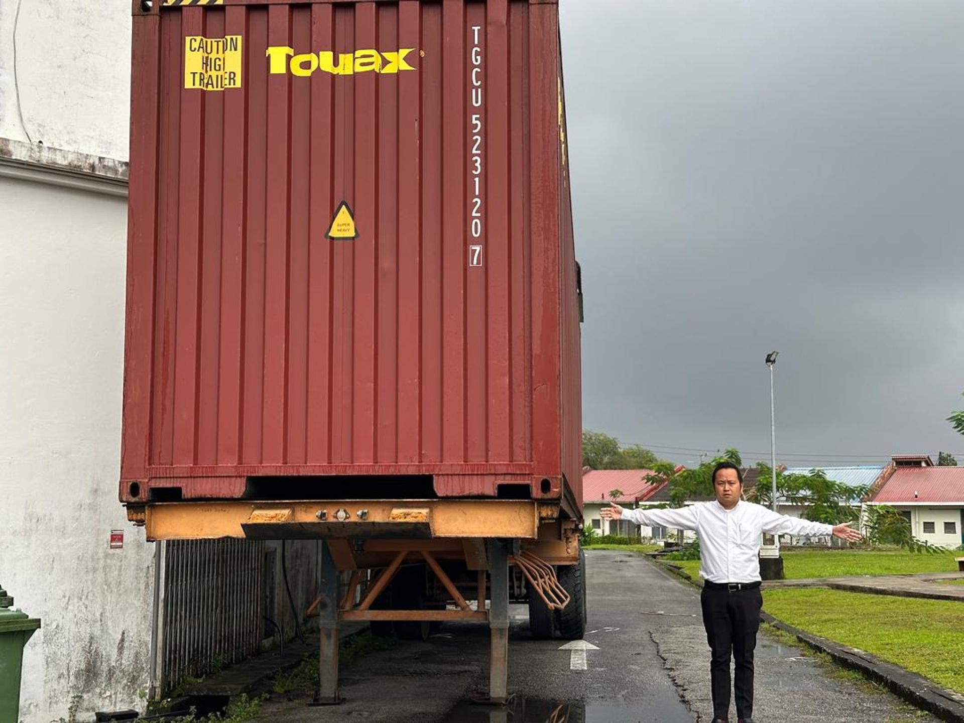 (古晋10日讯)砂商用车辆注册局主席江峰年披露,该局近日接获通报,一辆载有货柜的半拖格罗里停放在Lorong Kedandi 11一排店屋后方,完全阻碍交通,不仅影响车辆通行,也对道路使用者及附近居民造成不便,并构成潜在安全隐患。