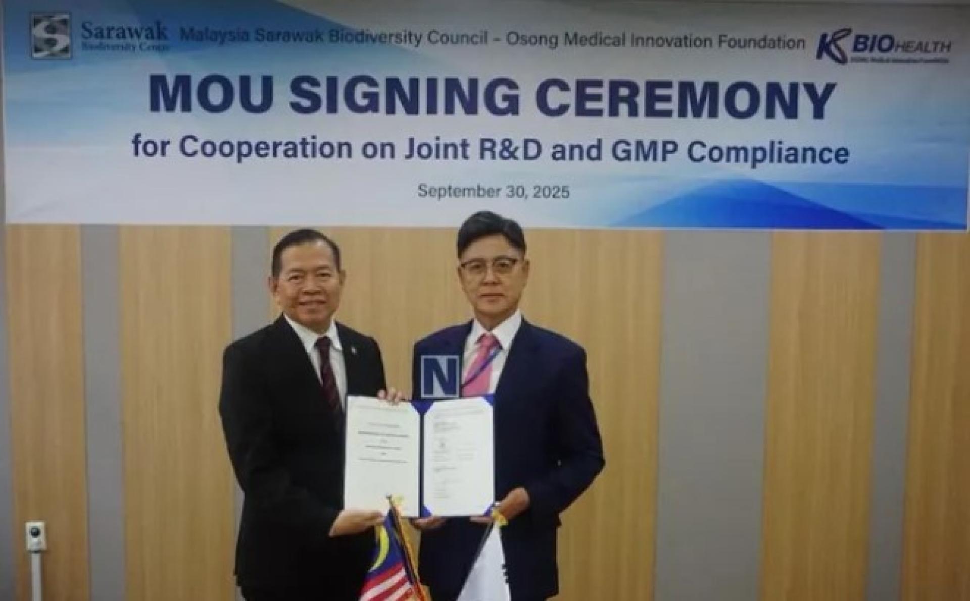 (古晋1日讯)砂拉越生物多样性委员会(SBC)与韩国梧松医药创新基金会(KBIOHealth)昨日签署一份谅解备忘录(MoU),以在生物科技领域展开合作,重点涵盖联合研究与开发(R&D)、监管协作及符合优良制造规范(GMP)等方面。