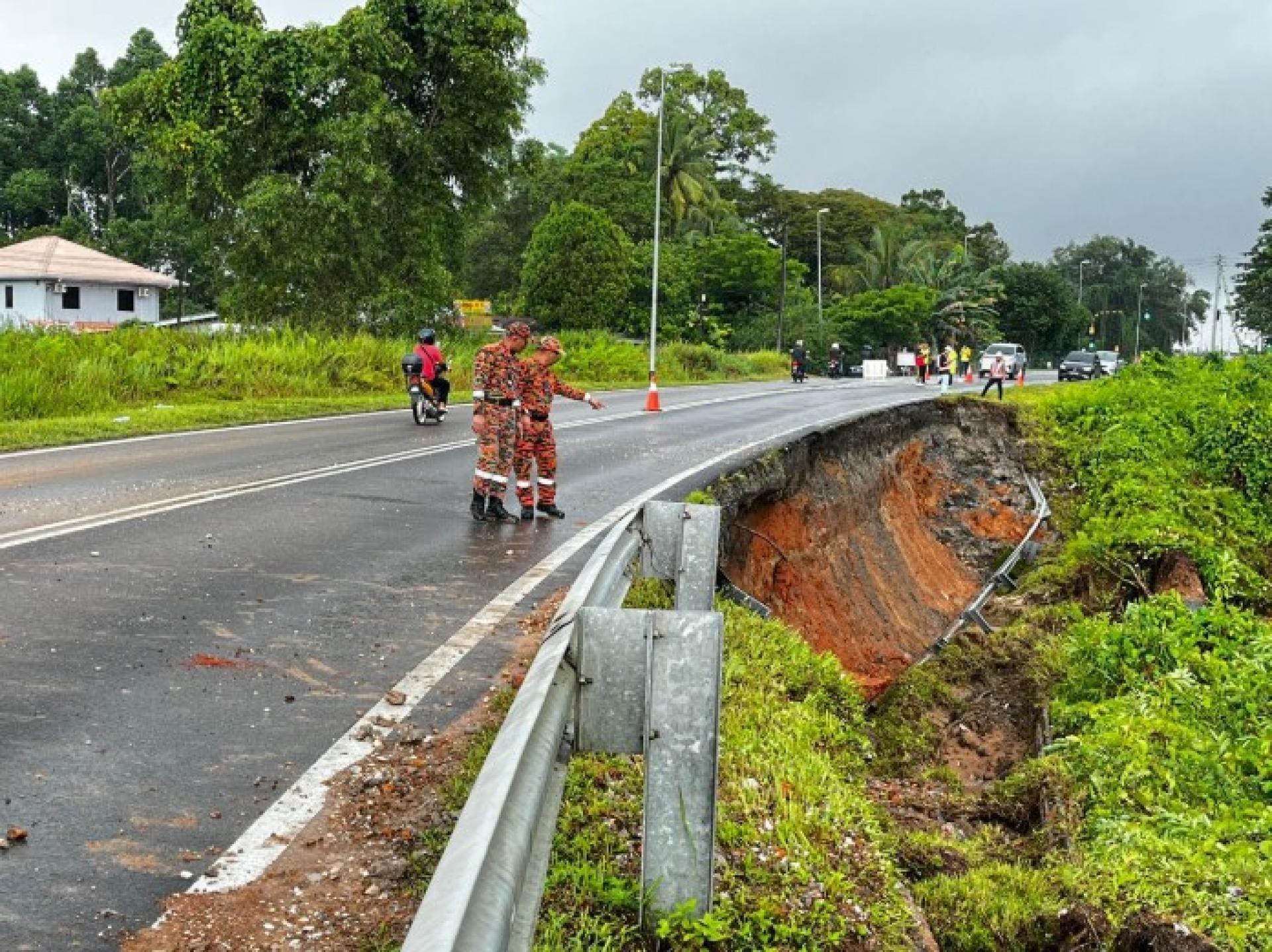 “这种情况对所有车辆,包括摩托车,都非常危险。虽然摩托车目前仍可通过该路段,但依然存在风险,”他在现场接受记者采访时表示。 因此,当局建议从古晋前往保,或从保前往古晋的道路使用者,选择替代路线以避免意外发生。 “可选择的替代路线包括哈吉巴基村路(Jalan Kampung Haji Baki)、Stephen Yong路或石角路(Jalan Batu Kawah)。” 他补充说,坍塌的具体原因仍在相关部门调查中,同时当地安全监控工作也在进行。 当局提醒民众遵守安全指示和路标警告,并在经过危险路段时保持高度警觉,尤其是在天气不稳定时。 昨晚在古晋—石隆门公路靠近哈吉巴基村(Kampung Haji Baki)发生一起山体坍塌事件,当局建议公路使用者改道。