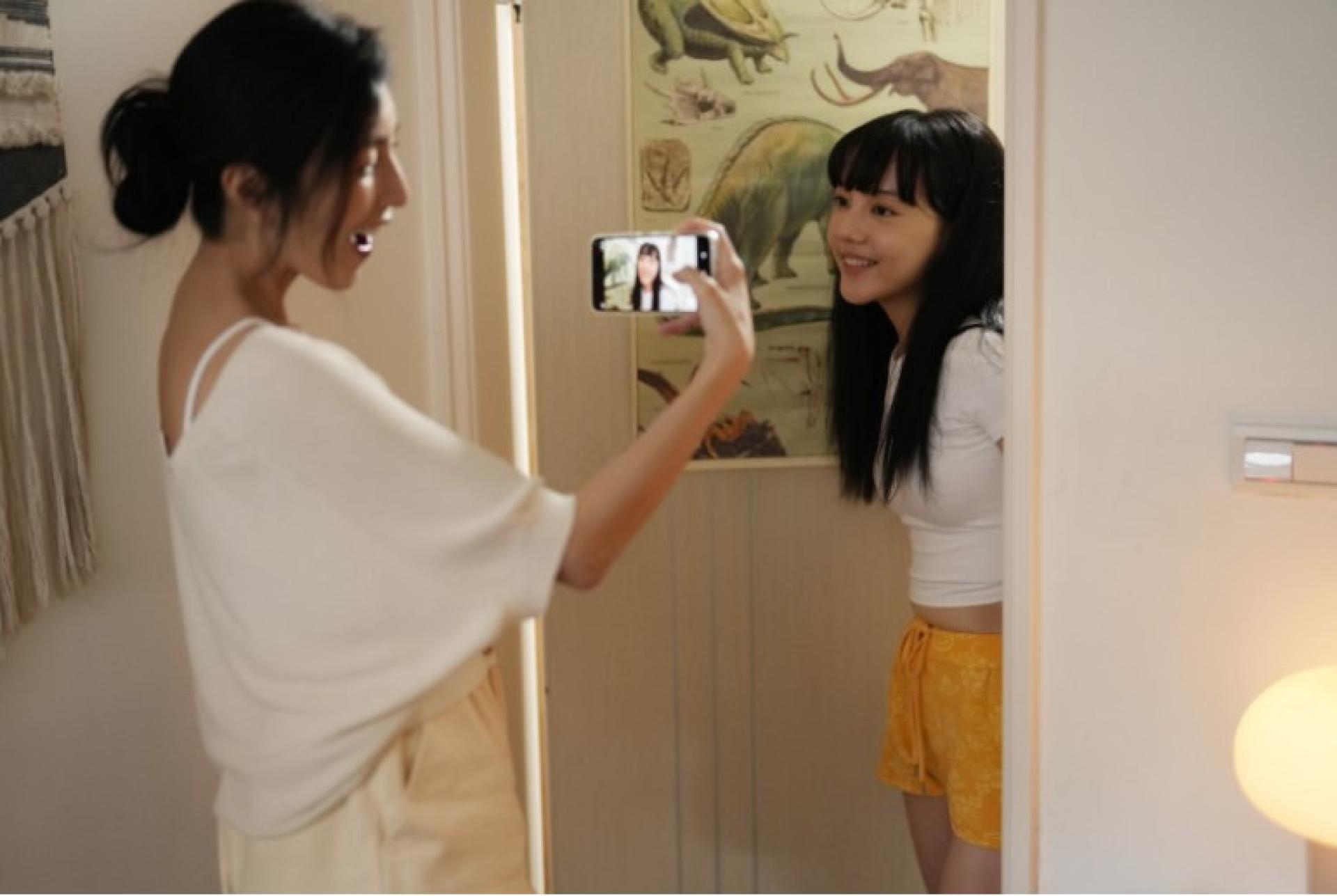 Cheryl Yang, who was crowned this year’s Golden Bell Best Actress, makes a speedy return to the screen with the brand-new series “How Much Do You Love Me,” premiering exclusively on Hami Video starting November 2. This time, she takes on the challenge of playing "Internet celebrity mom" Chen Yi-An, caught between unresolved issues with her own mother while also dealing with two daughters going through rebellious adolescence. Lin Si-ting and Jan Tzu-hsuan play sisters with starkly contrasting personalities; together the three portray the emotional tangle of mother-daughter love that’s "too much to express in words." In an exclusive interview with Hami Video, Cheryl Yang joked that there was no way to laugh while filming this drama, as the intense conflicts and strained mother-daughter bonds left her saying, "How can anyone smile when relationships are this bad – are they even human?" She described her character as the "filling in a sandwich": caught between old grudges with her mother above, and endless issues with her two daughters below, "Being pulled from both ends and completely burned out." 林思廷面对拿着镜头的杨谨华,给出一个微笑。As for her feelings about playing an internet celebrity mom, she admitted that after filming, she admires those who work as influencers even more. When asked what type she’d pick if she were an influencer in real life, both Lin Si-ting and Jan Tzu-hsuan said "travel influencer," while Cheryl Yang laughed and said she’d be an "adventure influencer" who challenges haunted houses: “I’m actually super timid, I’d just keep screaming!” She also exclaimed: “Influencers are amazing! They have to keep talking to the camera — I couldn’t do it!” The three have a close rapport off set as well. When asked, “Who talks the most?” Cheryl Yang immediately pointed to Jan Tzu-hsuan: “She’s the chattiest!” and revealed that for Lin Si-ting “it depends.” She joked, “If she has just a small drink, watch out!” and swung her hand exaggeratedly to mime a playful slap, setting off peals of laughter on set.