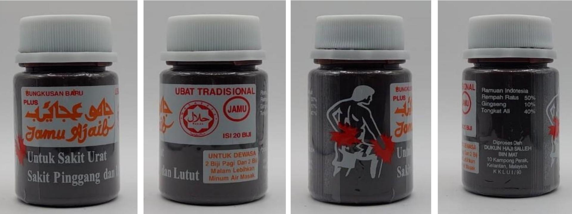 (斯市7日讯)卫生部谨此提醒公众,一种保健产品经卫生部科学服务局药剂部实验室检测后,发现掺杂了未申报、属《1956年毒药法令》所列受管制毒药物。该产品名称为神奇缓痛草药(神经痛, 腰痛, 膝痛)“Jamu Ajaib Untuk Sakit Urat, Sakit Pinggang dan Lutut”,制造商为马来西亚吉兰丹州Perak村的Dukun Haji Salleh Bin Mat。此产品被发现含有倍他米松(Betamethasone)及地塞米松(Dexamethasone)。