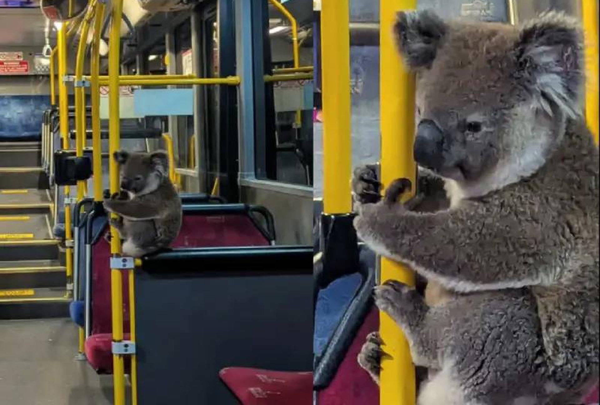 The incident occurred on the evening of the 13th, when a bus driver was passing through downtown and saw a koala clinging to an outdoor street light pole. Worried that the koala might slide down and get hit by passing vehicles, the driver covered its head with a jacket, brought it onto the bus, and contacted a koala rescue organization for help.