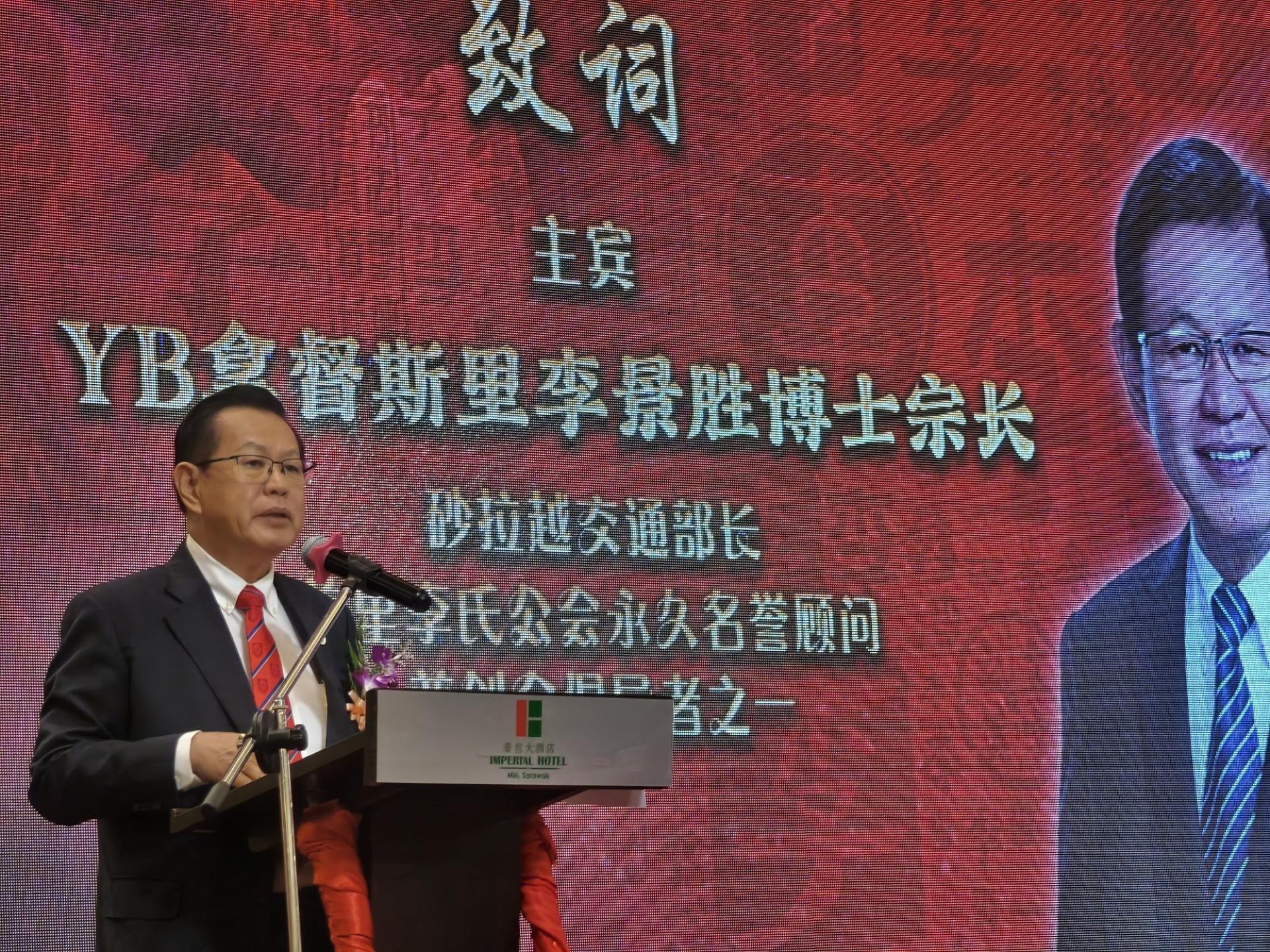 砂拉越美里李氏公会永久名誉顾问兼砂拉越交通部长拿督斯里李景胜致词。 Speaking about the role of clan associations in development, Lee Kim Shin emphasized that clan associations are not only cultural organizations but also an important force in society. “The next 10 years are a key stage for Sarawak’s development. Whether it’s the economy, talent, education, or green transformation, all need participation from all sectors of society. The value and organizational ability of clan associations are the foundation of social stability and development.” He said that in the past 25 years, the Miri Lee Clan Association has not only inherited culture but also actively promoted education, cultural activities, and community building, playing an important role in community harmony. He pointed out that many clan associations face insufficient youth participation, so organizations must “modernize and keep up with the times”, including promoting management and activities in a more youth-oriented and digital way to attract the new generation to join.