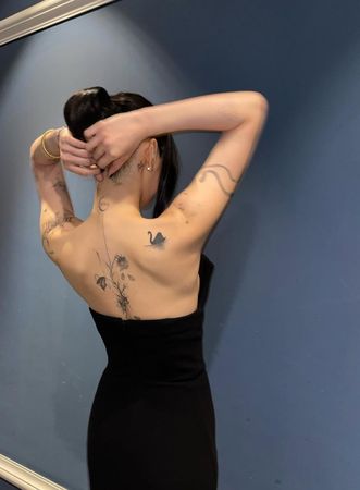 Looking back on this tattoo journey, when Nana appeared in 2022 to promote the movie 'Confession,' her large tattoos extending from the collarbone and arms to the instep starkly contrasted her previous sweet image, stirring up a heated discussion for a time. She later admitted on an online show that, at the time, she chose tattoos as an outlet for her emotions because she was in a poor mental state. #