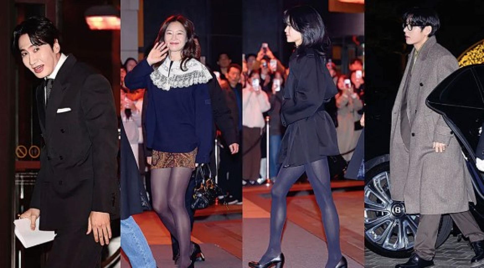 李光洙(左图起)、孔晓振、金泰梨、V参加婚礼。In addition, the couple, who have been in a low-key relationship for 10 years, maintained their privacy on their wedding day. Although numerous celebrity friends like Lee Byung-hun, Gong Hyo-jin, Kim Tae-ri, Uhm Jung-hwa, Lee Se-young, Ahn Bo-hyun, Nam Joo-hyuk, Yoo Hae-jin, Ryu Jun-yeol, BTS member V (Kim Taehyung), top producer Na Young-seok and others attended the wedding, everyone fully cooperated with the couple’s wish for privacy, so no photos or videos from inside the venue were leaked.