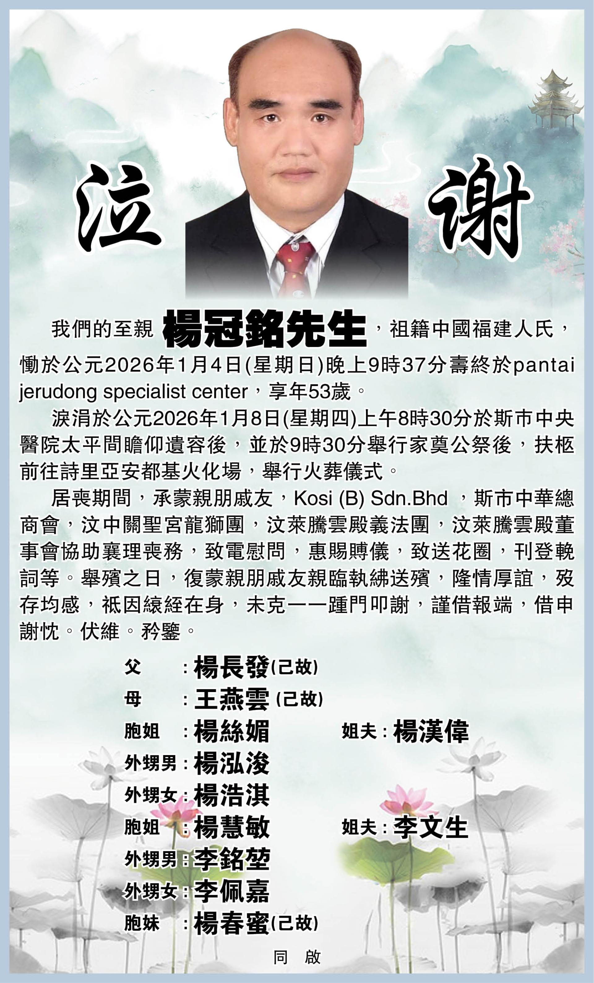 【泣谢】楊冠銘