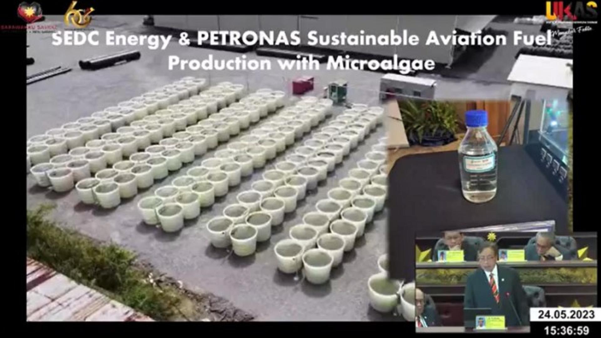 阿邦佐哈里于2023年5月24日在砂拉越立法议会总结发言时分享的“砂拉越制造藻类生物燃料”简报投影片。