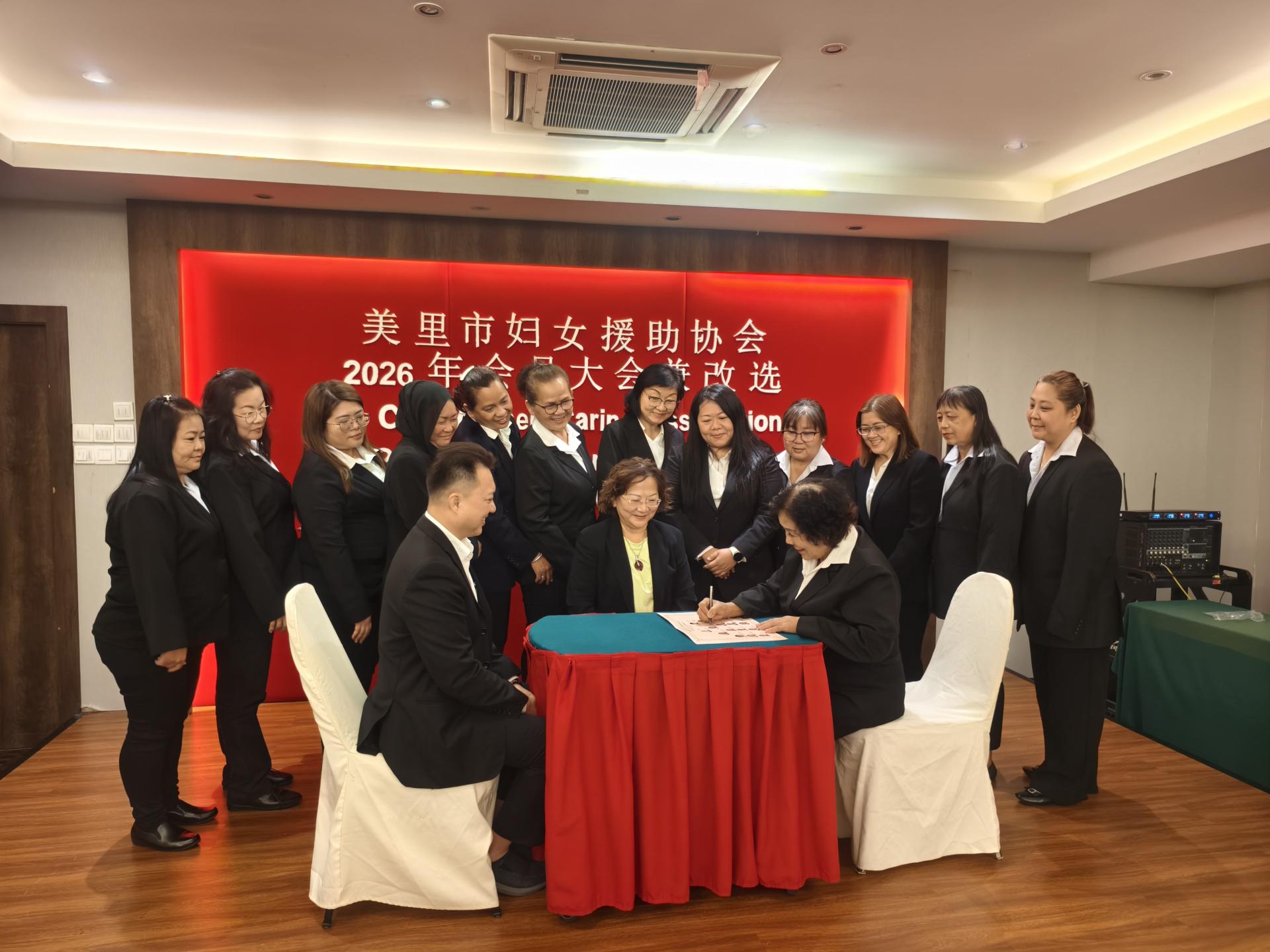 (本报美里8日讯)美里市妇女援助协会今日于贝园酒店召开2026年会员大会暨改选,第5届(2026年至2028年度)理事会顺利产生,甲必丹陈彩萍众望所归,连任主席一职。