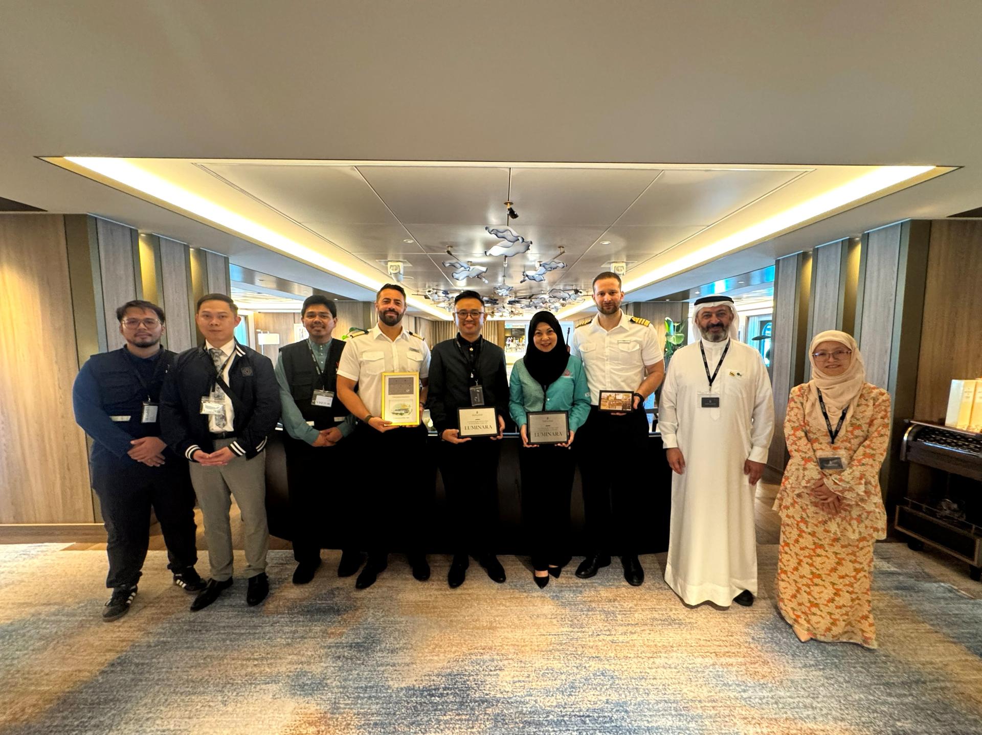 (Bandar Seri Begawan, 24th) Brunei yesterday ceremoniously welcomed the debut call of the top-tier luxury superyacht “Luminara”—under The Ritz-Carlton Yacht Collection. The vessel carries around 207 passengers and 334 crew members, having sailed from the Philippines and heading next to Singapore. This port call marks not only an important stop on Luminara’s maiden voyage but also symbolizes a pivotal step forward in the development of Brunei’s cruise tourism industry.