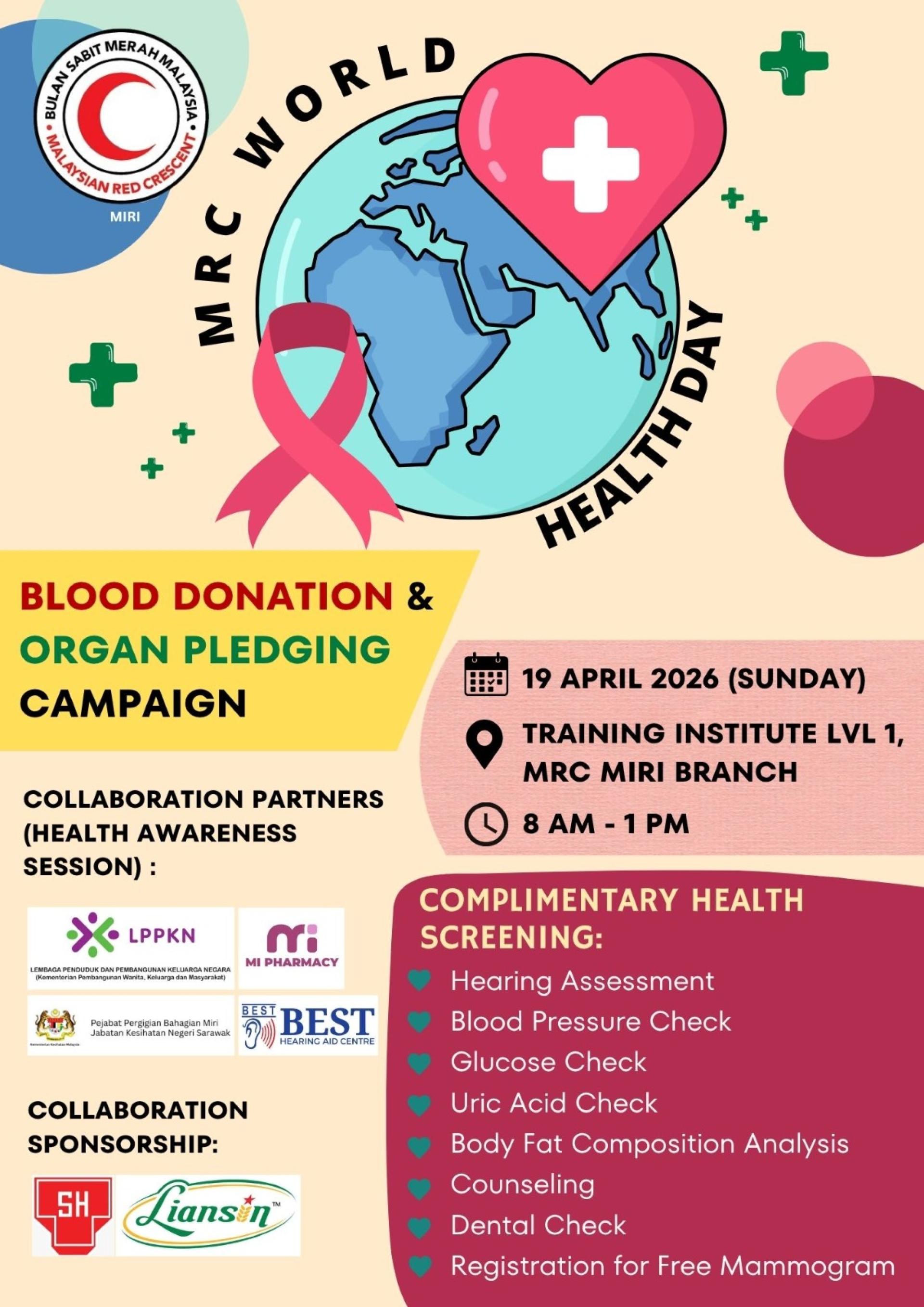 此次活动获得国家人口及家庭发展局(LPPKN)、MI Pharmacy、Best Hearing Aid Centre及美里省牙科部门等单位支持成为健康伙伴,同时也获得TSH集团及联新贸易公司作为合作赞助单位。