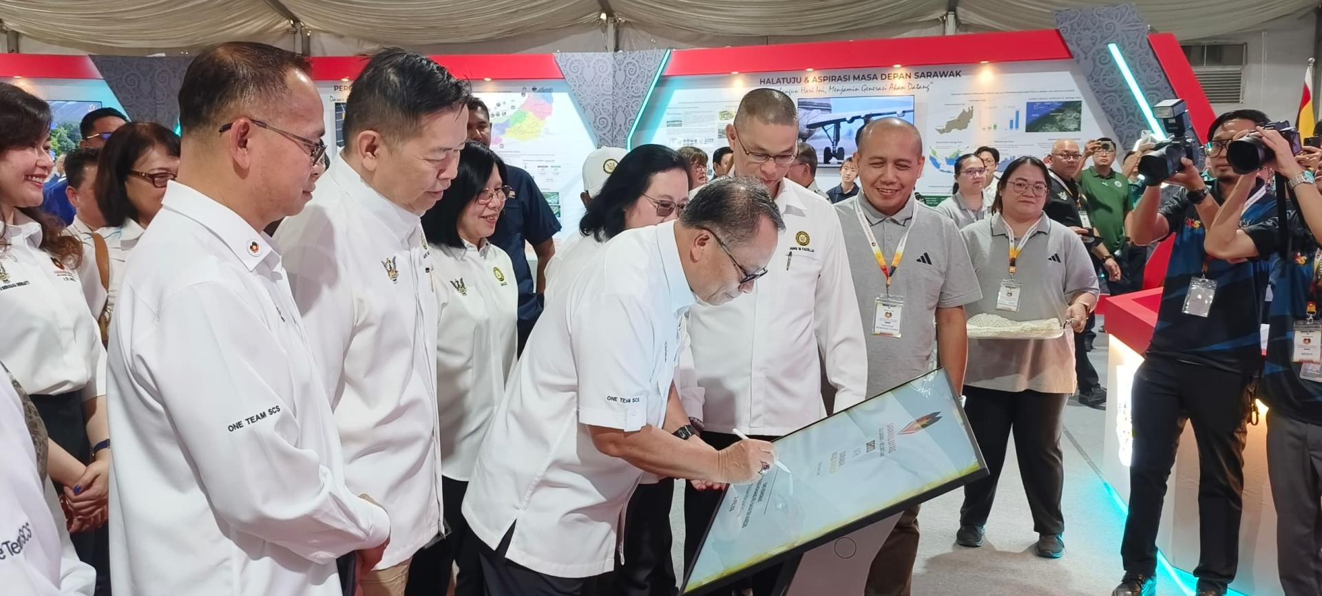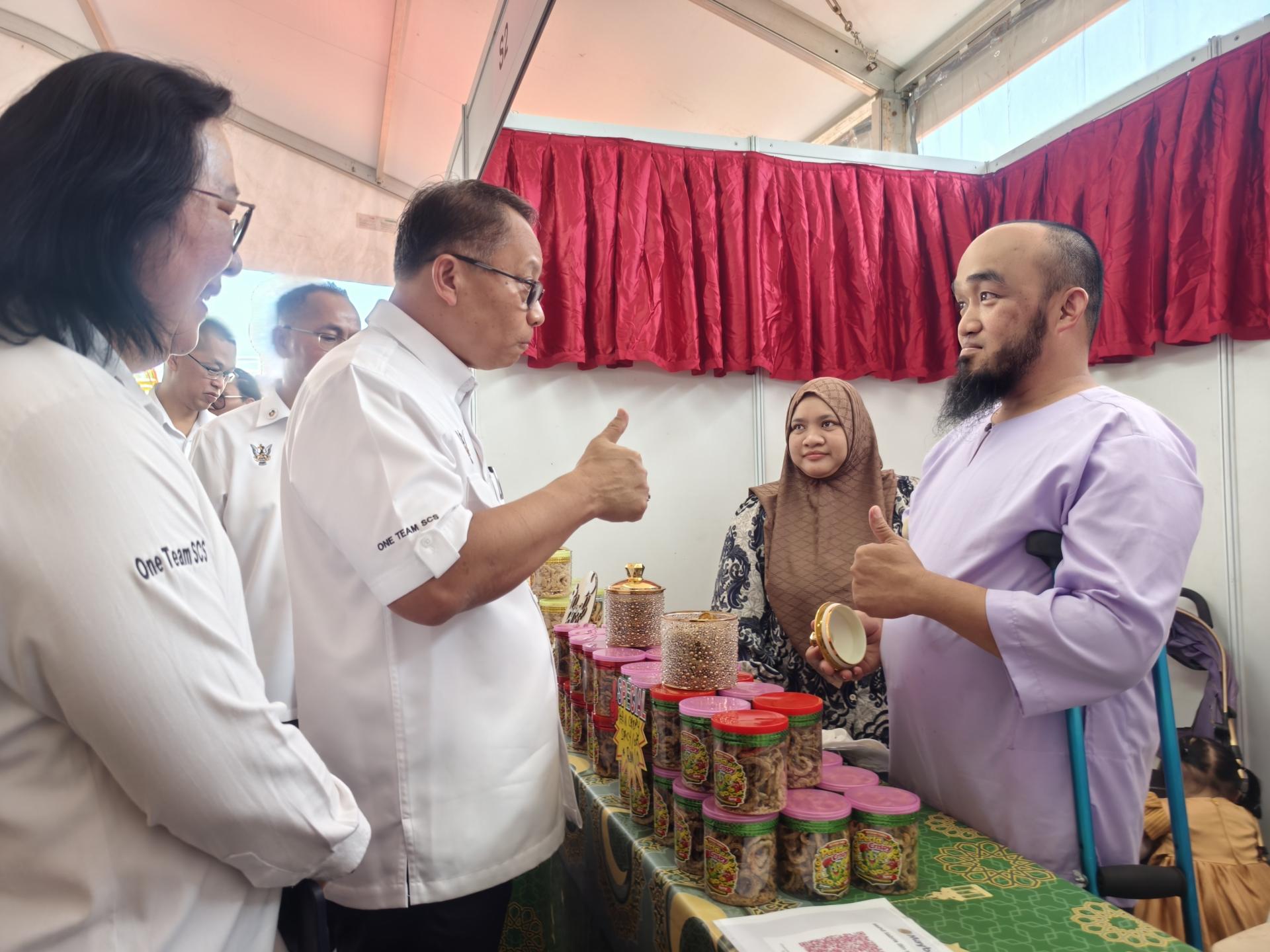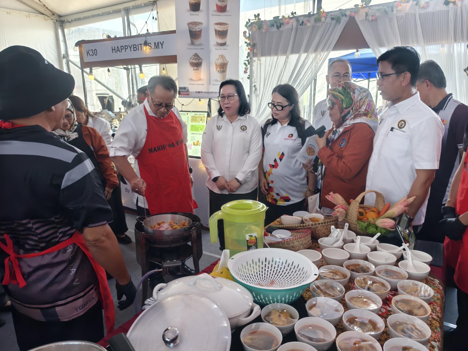 在仪式前,他也抽空巡视由各政府机构及部门设立的展览摊位,并参观“Miri Kitchen”美食区,了解本地业者所展示的各类美食及食品产品。