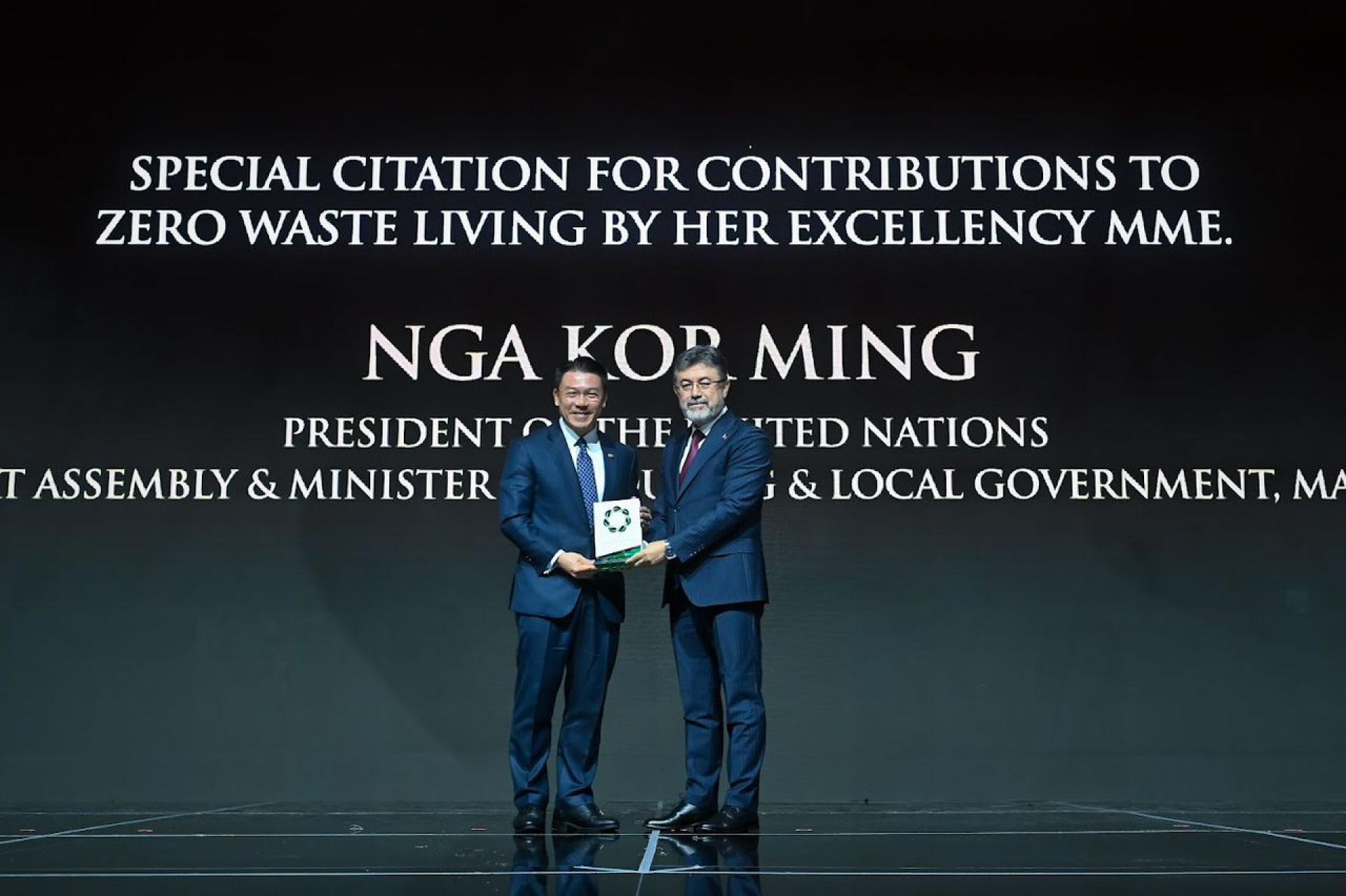 The award was presented in Istanbul by the First Lady of Turkiye Emine Erdoğan, who is also the patron of the Zero Waste Foundation, to Housing and Local Government Minister Nga Kor Ming, during the Global Zero Waste Forum 2025 on Sunday.