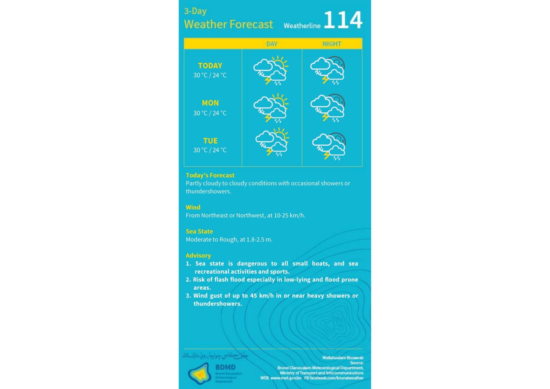 The Meteorological Department urges the public to stay updated with the latest weather information by calling the weather hotline 114, or visiting the official website and Facebook page “bruneiweather” for real-time updates.