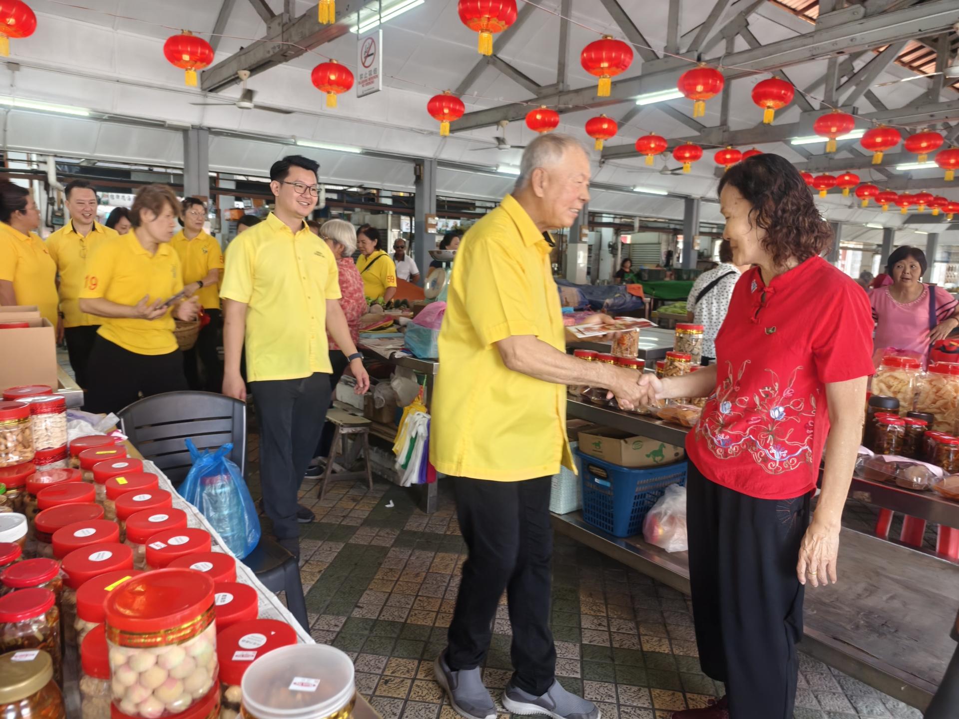 各区代表沿途向小贩及市民送上年柑和新年祝福,祝愿大家在新的一年身体健康、生意兴隆、阖家平安,并趁机聆听基层心声,了解民众所关注的各项民生课题,不少民众也把握机会反映生活上的问题。