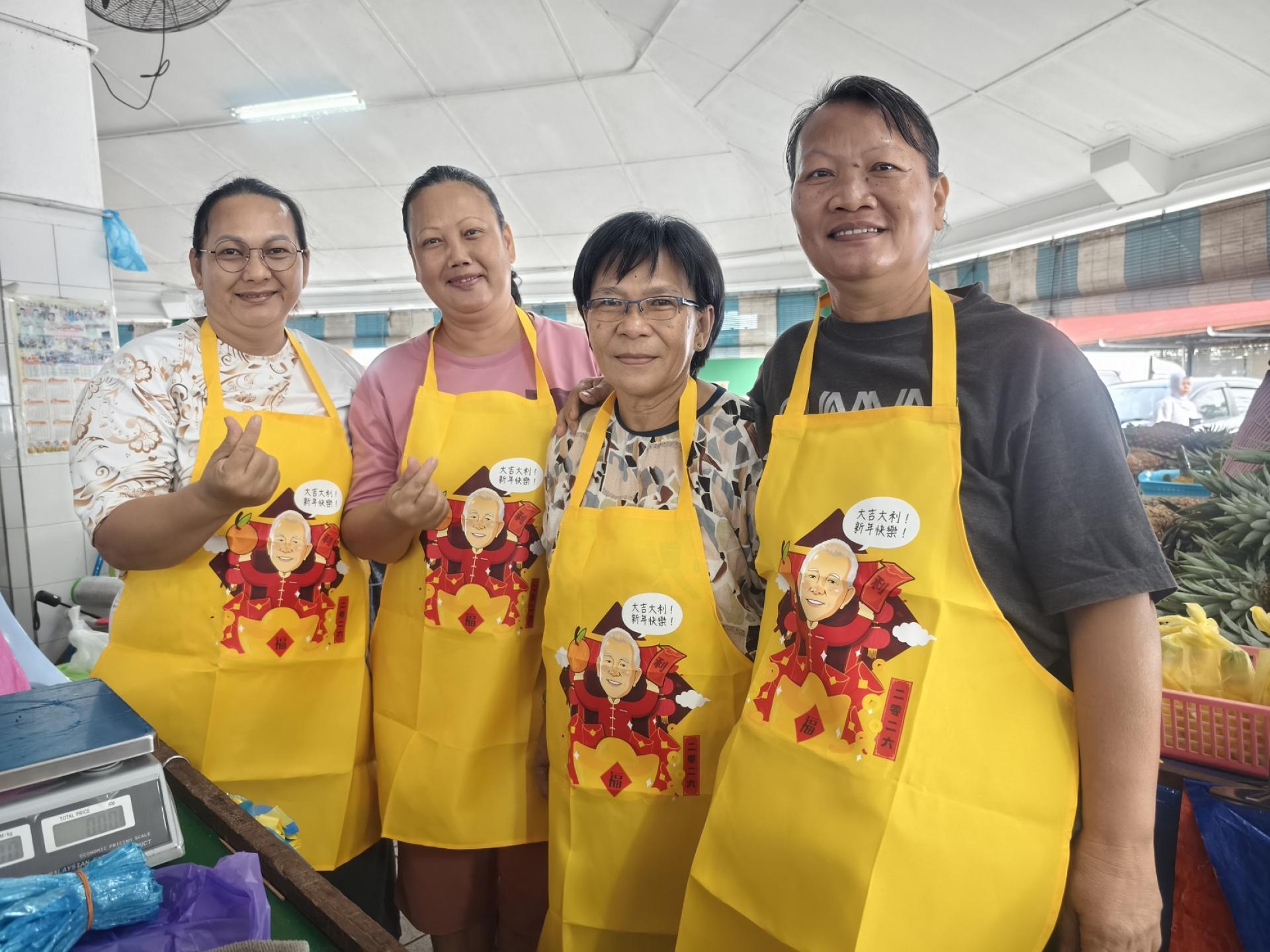 在过程中,陈超耀也特别向民众派发印有其个人肖像的马年新年贺卡及围裙,增添节庆气氛。
