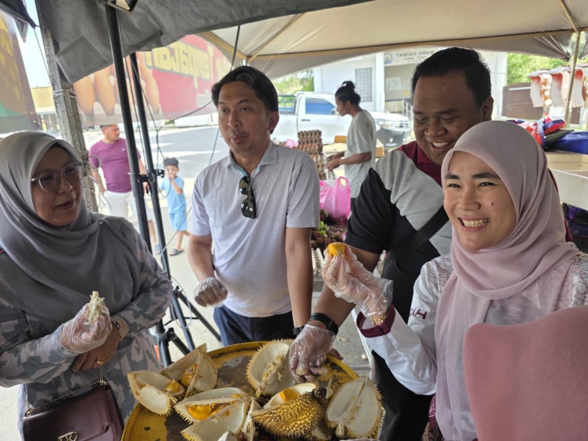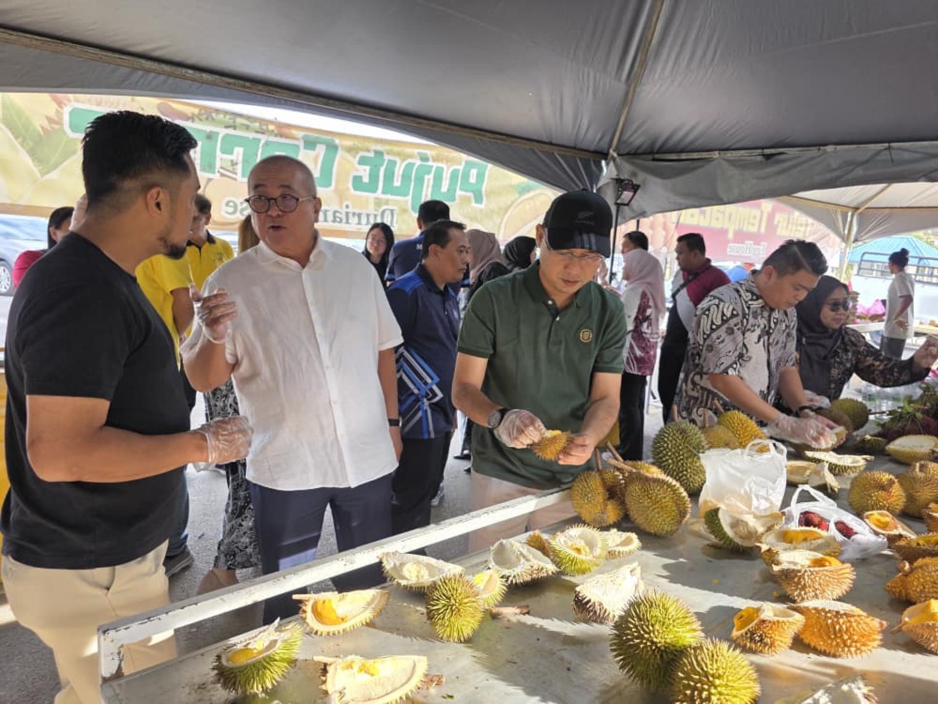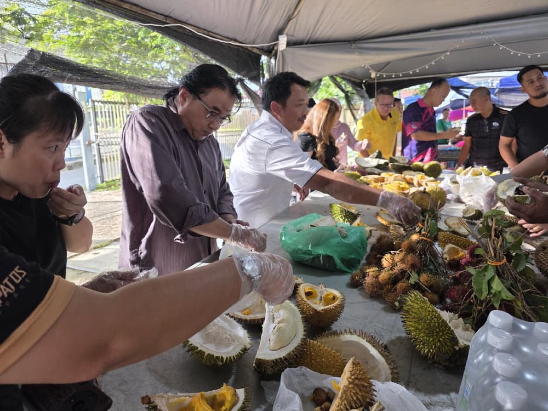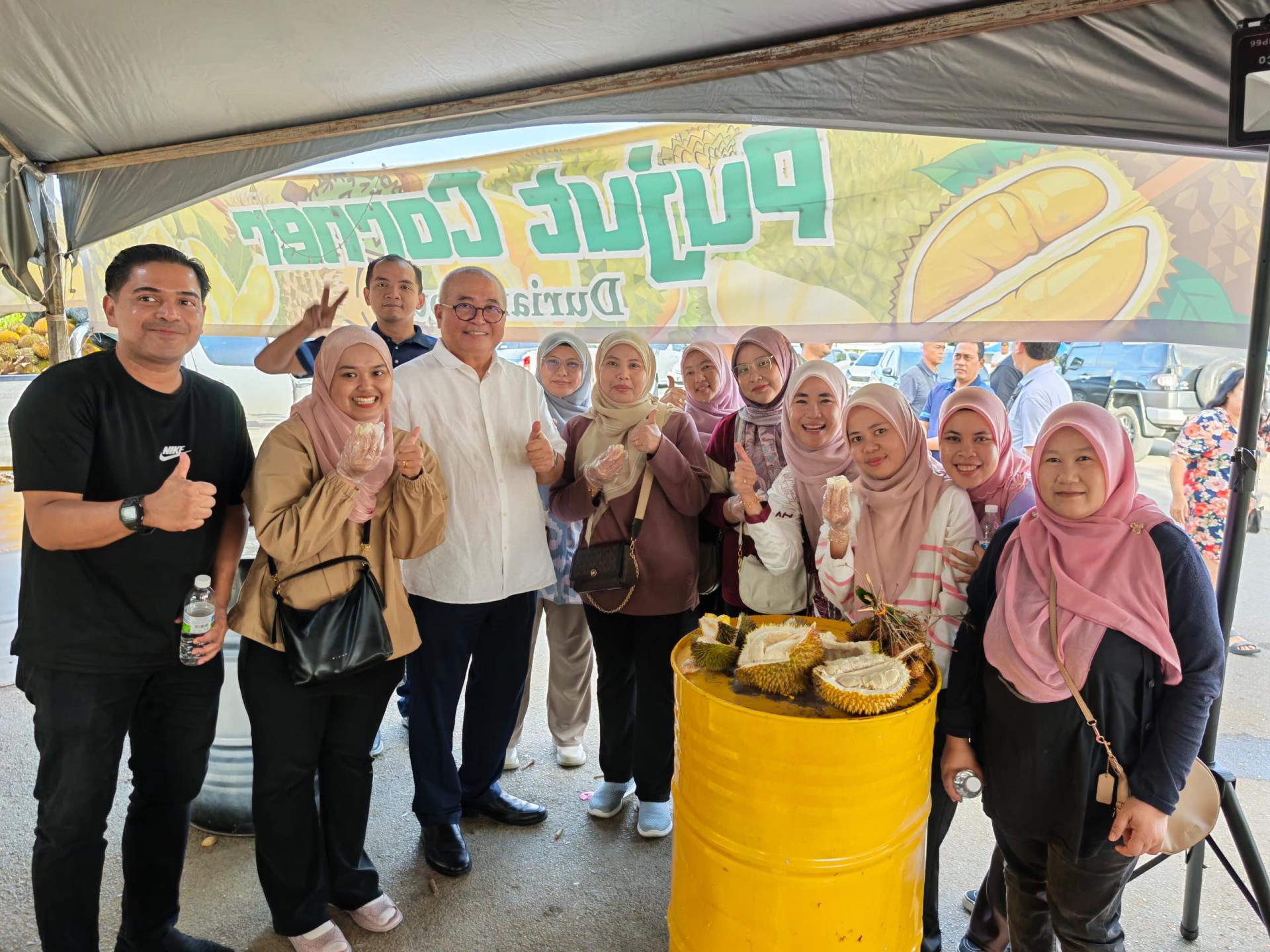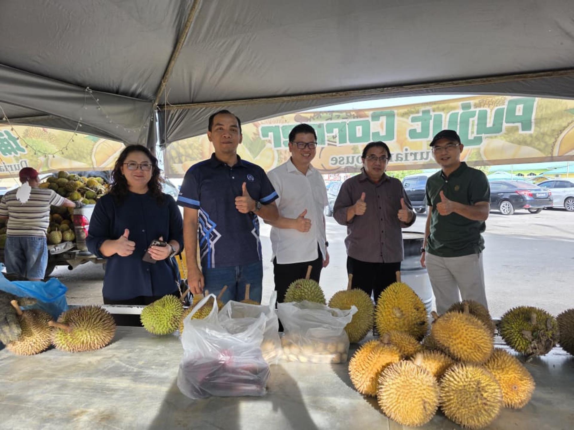 会后,在美里市长俞小珊及美里市政局旅游发展工作小组主席兼市议员范宏祥的陪同与安排下,访问团前往位于埔奕湾旧长途巴士总站的临时季节性水果中心参观,并品尝多种本地时令水果,深入体验砂拉越饮食文化。