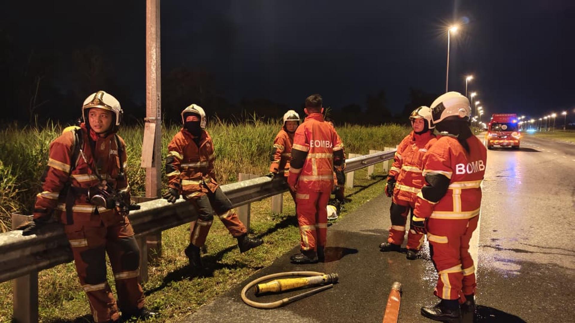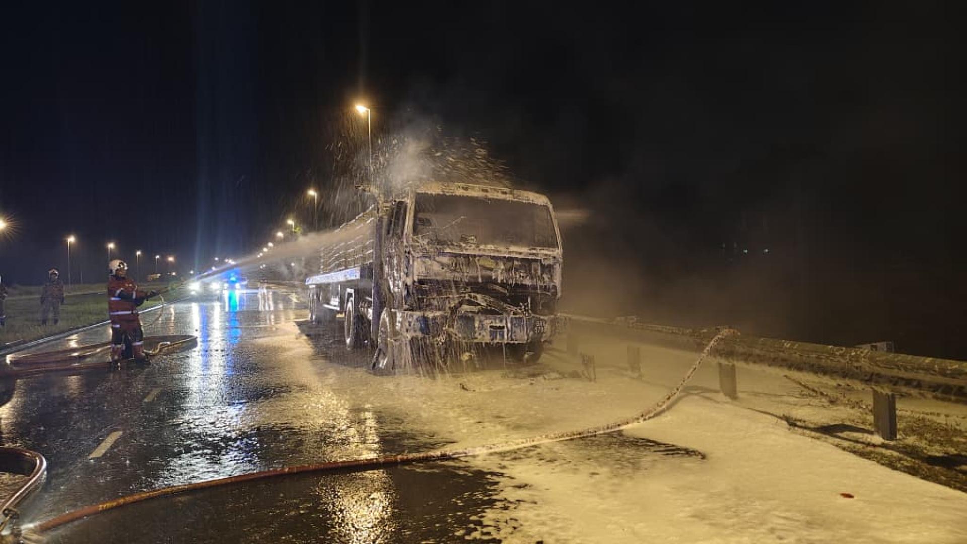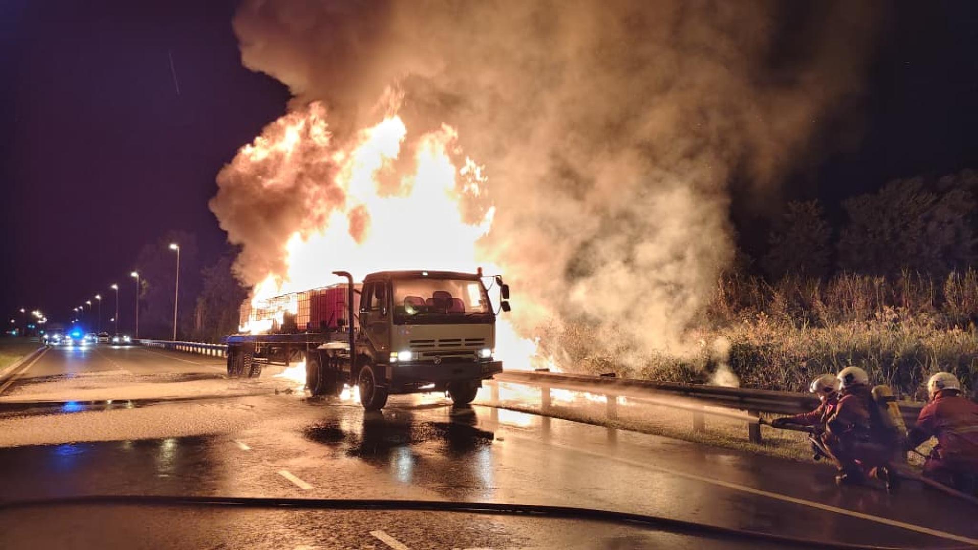 載有腐蝕性化學品的貨車 在美里捷道起火燃燒