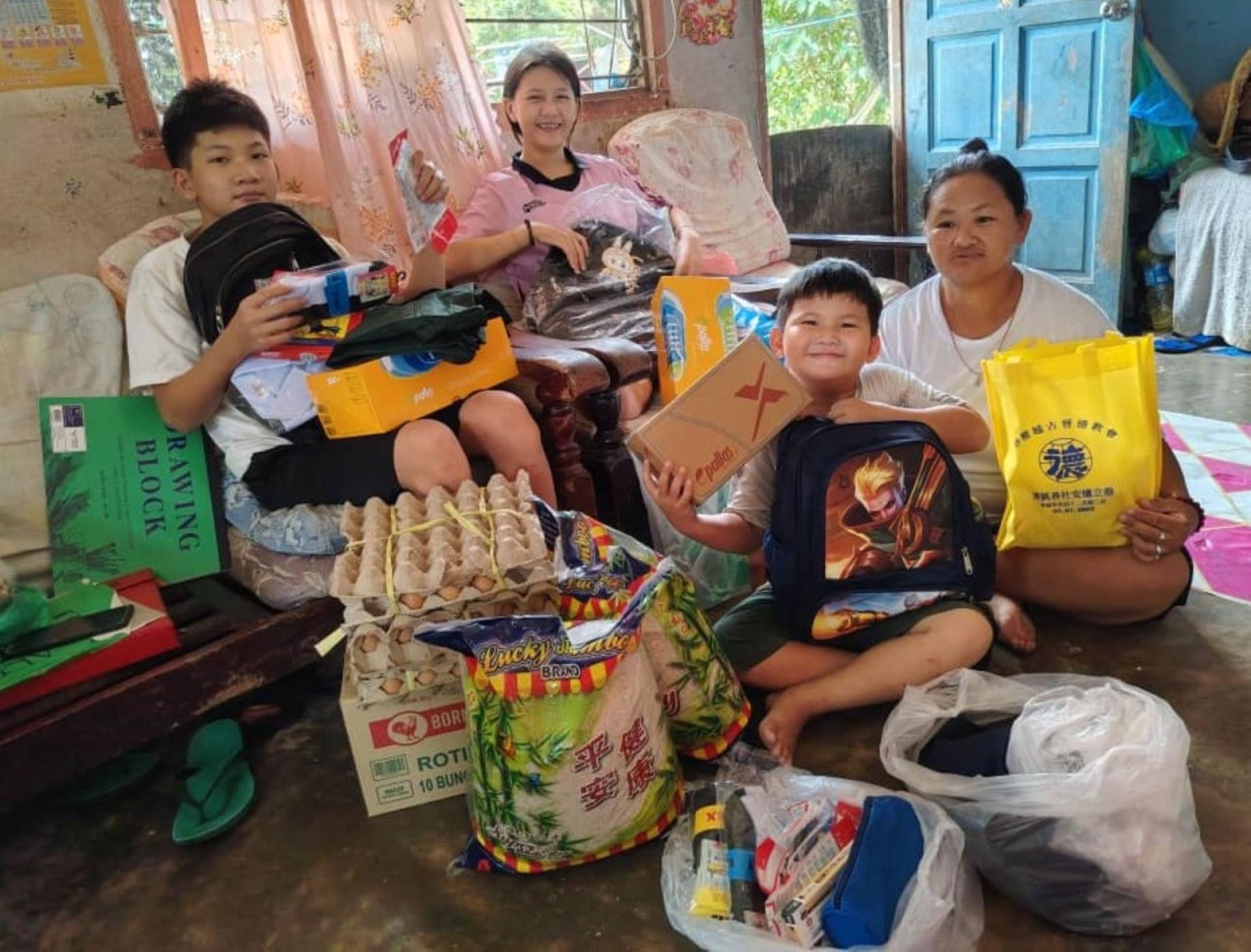 该社于日前为英吉利里一单親妈妈家庭送暖,给予日常生活物品和食品,并为她所育尚在求学三名儿女(分别17岁、15岁及7岁)送上校服、鞋子、书包、文具,鼓励他们努力求学,让这个家庭感受到社会给于的关怀。