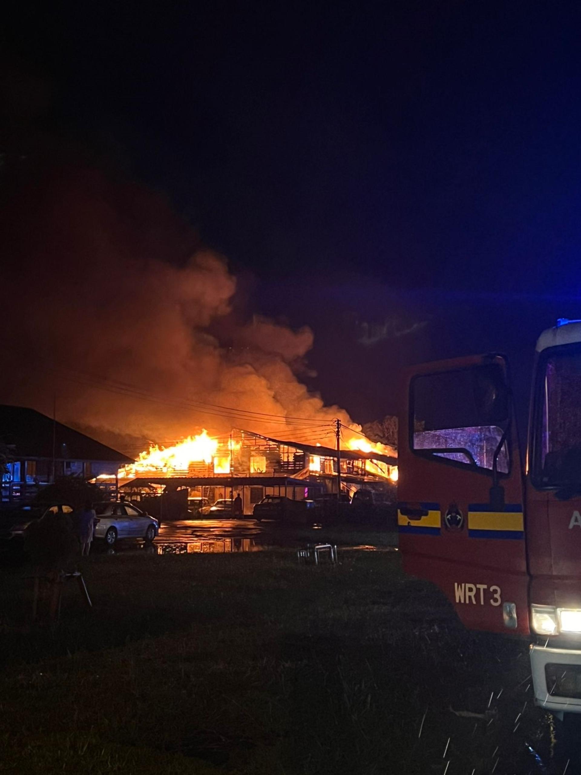 (诗里亚25日讯)在昨日清晨,位于诗里亚罗沙杜巴拉路的一排屋式住宅及工厂(诗里亚电力局对面)发生大火,导致整排建筑物被烧毁,多名华人住户失去家园。