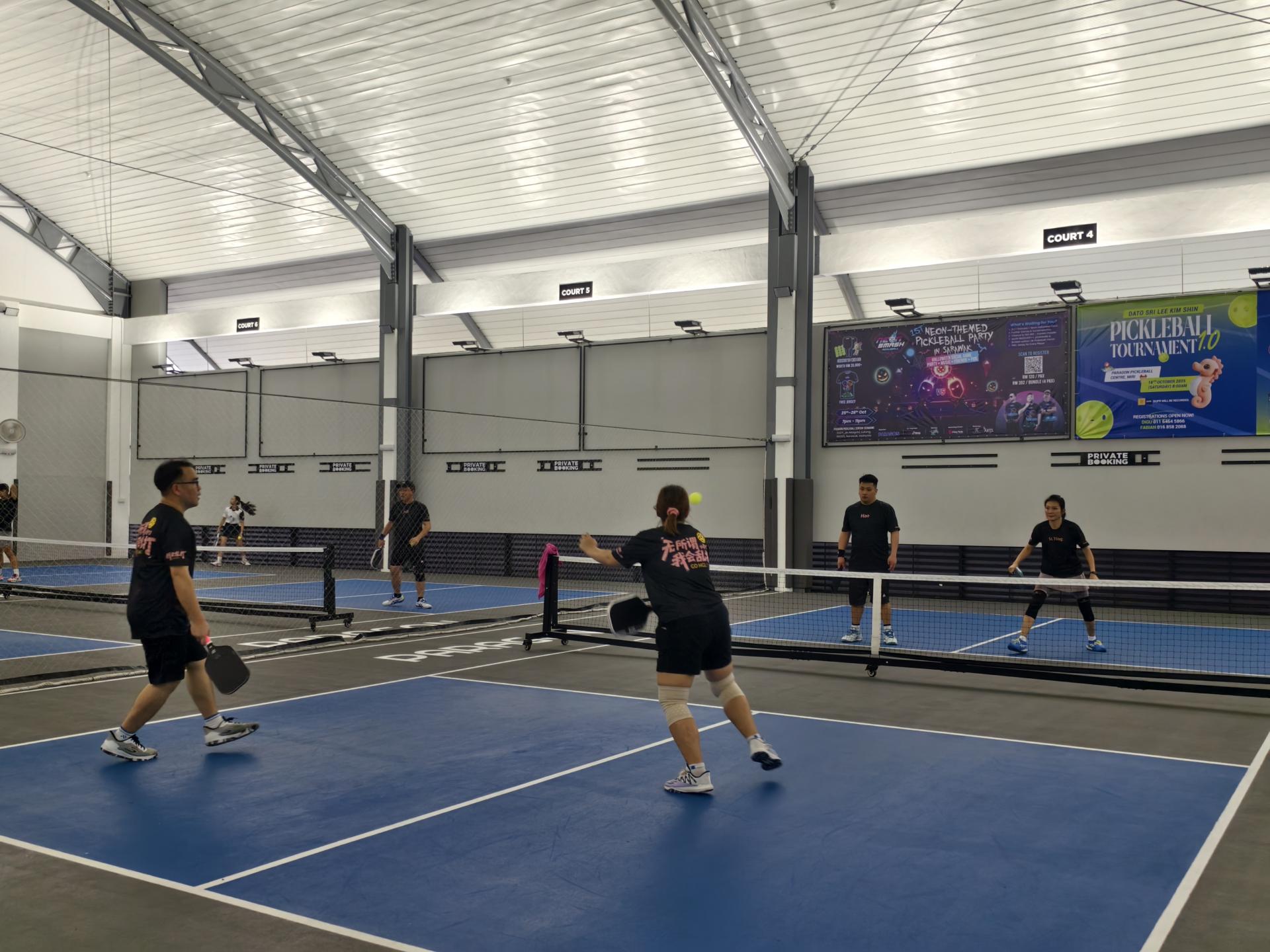 参赛者赛前进行热身。 李景胜说,砂拉越政府在总理拿督巴丁宜阿邦佐哈里领导下,重视人力资源全面发展,除教育与经济外,也注重健康、体育及社会福祉。美里陆续增设的体育设施,包括匹克球中心,正是鼓励民众培养健康生活方式的重要平台。