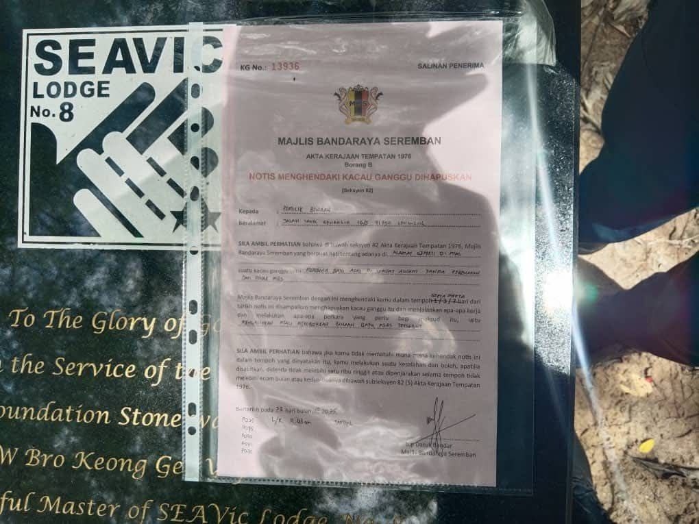 良冷(Lenggeng)州议员拿督莫哈末阿斯纳周四(22日)表示,本身接获投诉指, Bandar Tasik Senangin住宅区附近的一片土地,出现一座纪念碑。