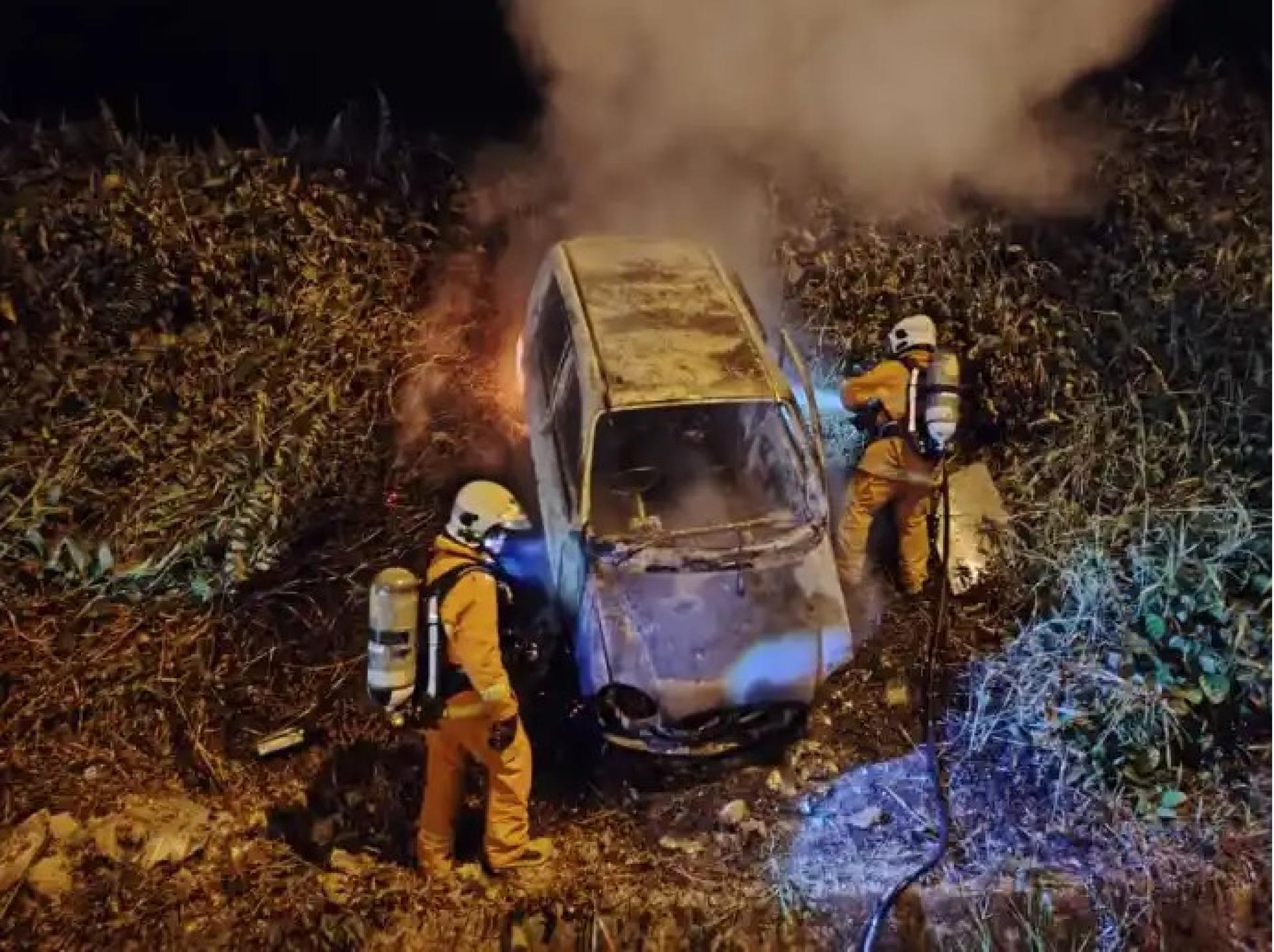 事发车辆被大火吞没,完全烧毁。