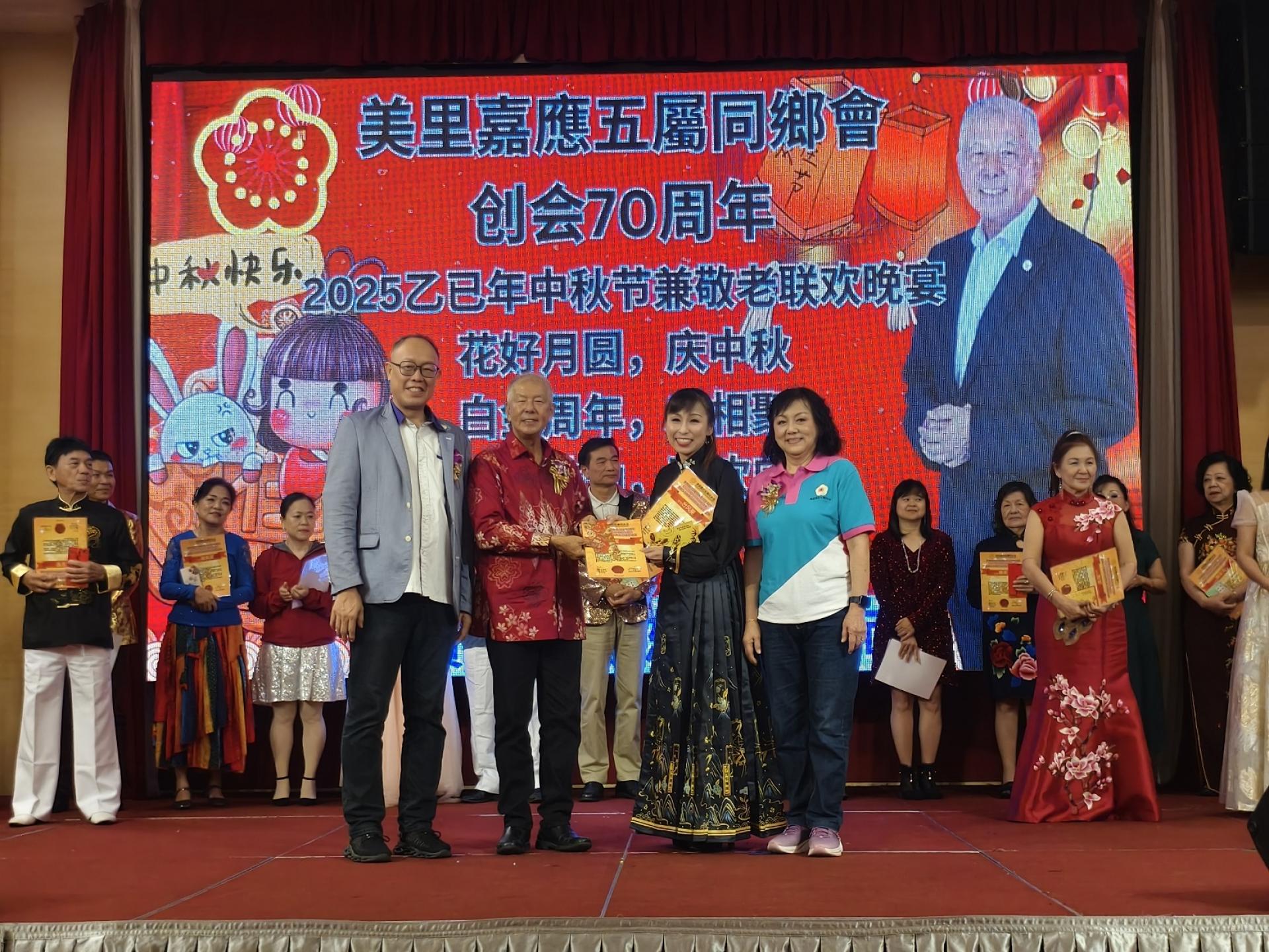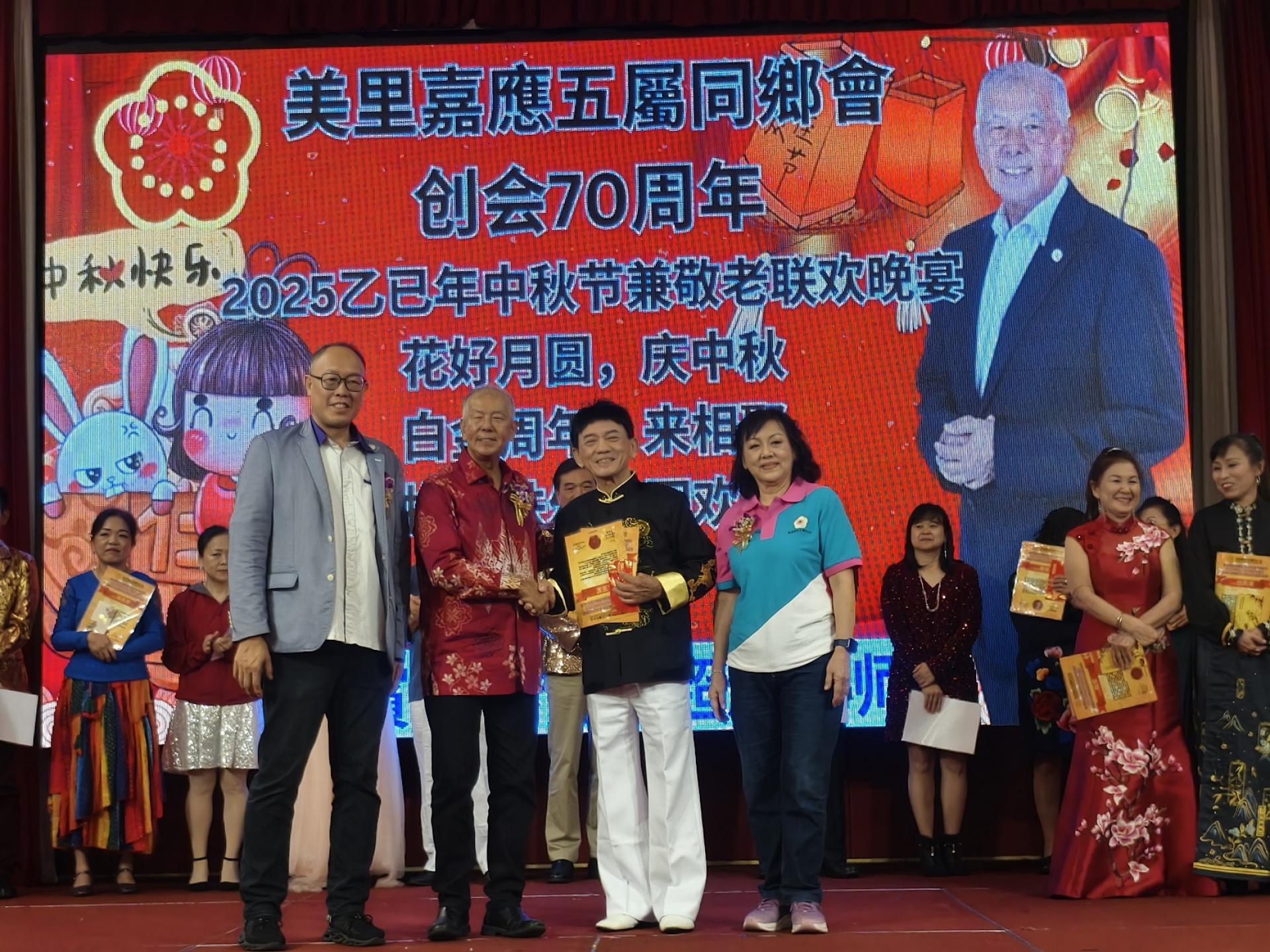 (本报美里10日讯)配合创会70周年庆,美里嘉应五属同乡会昨晚于帝宫大酒店宴会厅举办“2025年中秋节敬老联欢暨各属乡会精英宿将男女华语歌唱赛”,场面热闹。