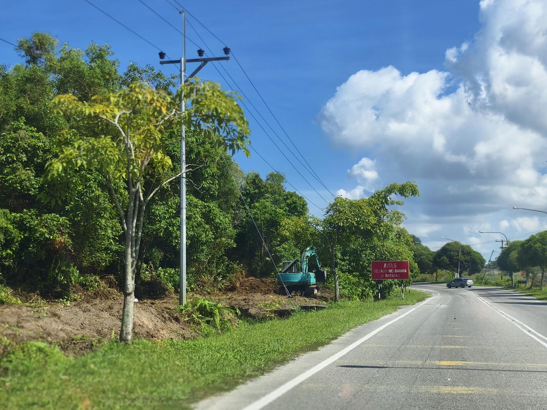 MIDIN路口前方路段进行排水泥沟清理作业。