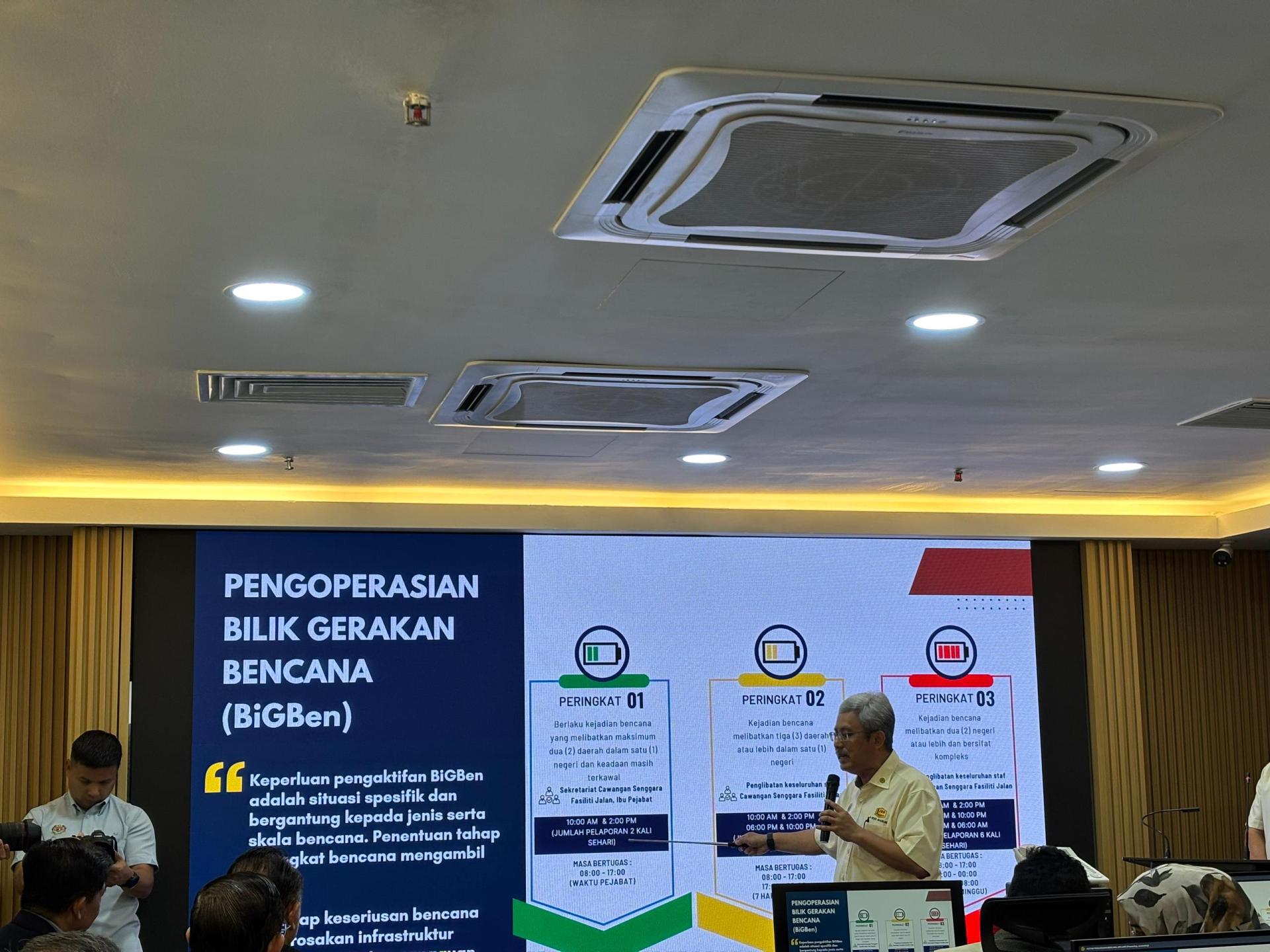 赵俊文指出,eBencana 应用程序作为全国道路灾害资料的集中平台,由各县及州 JKR 上报的信息统一汇整至 BiGBen,包括突发水灾、河水暴涨、山泥倾泻、路面坍塌、路基下陷及桥梁损毁等灾情,并以近乎实时方式更新,让公众能快速掌握准确的道路资讯。