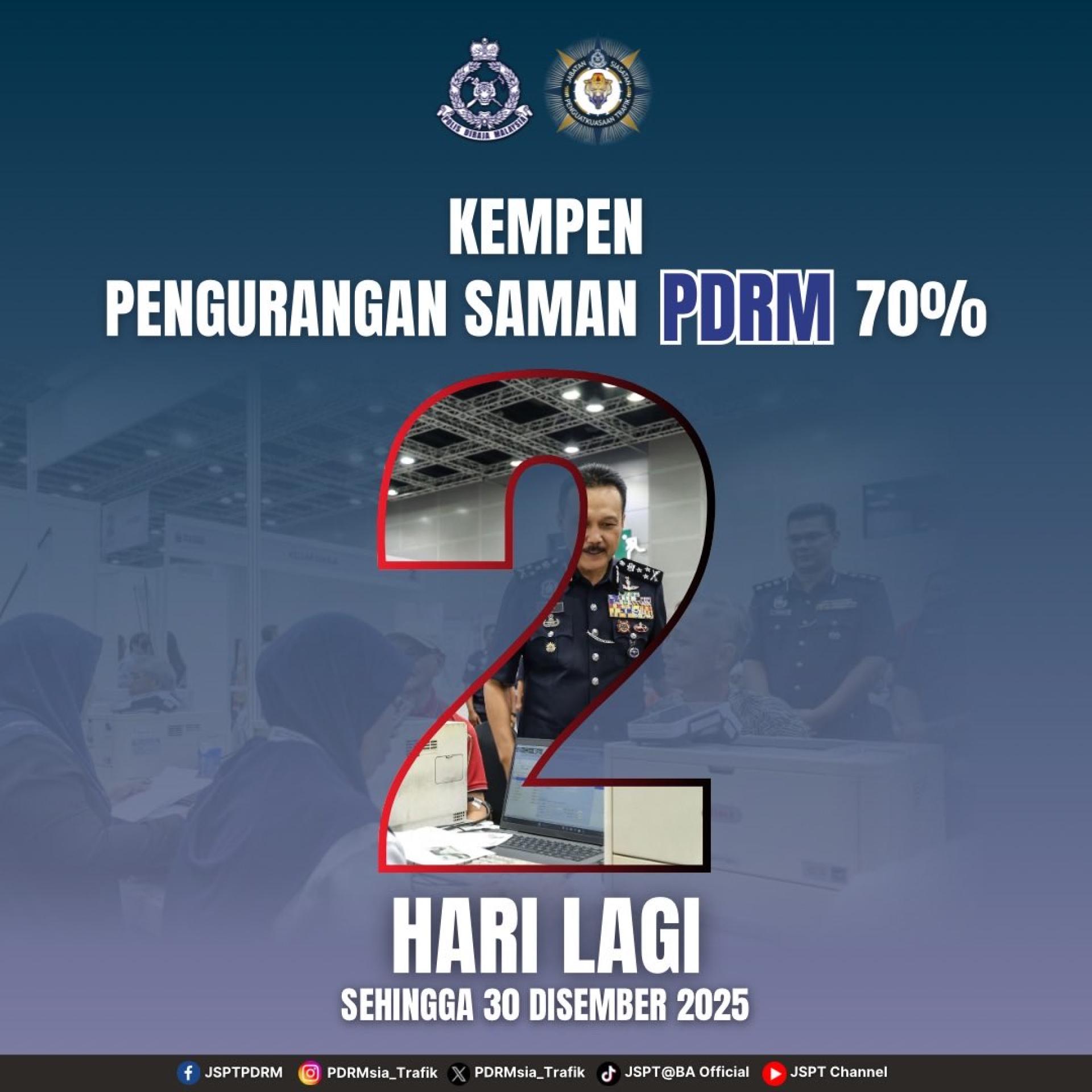 “交通罚单70%折扣优惠”即将结束,截止日期为2025年12月30日。民众受促把握最后机会,尽快以安全、快捷及便利的方式缴清交通罚单,避免错失这一难得的优惠。