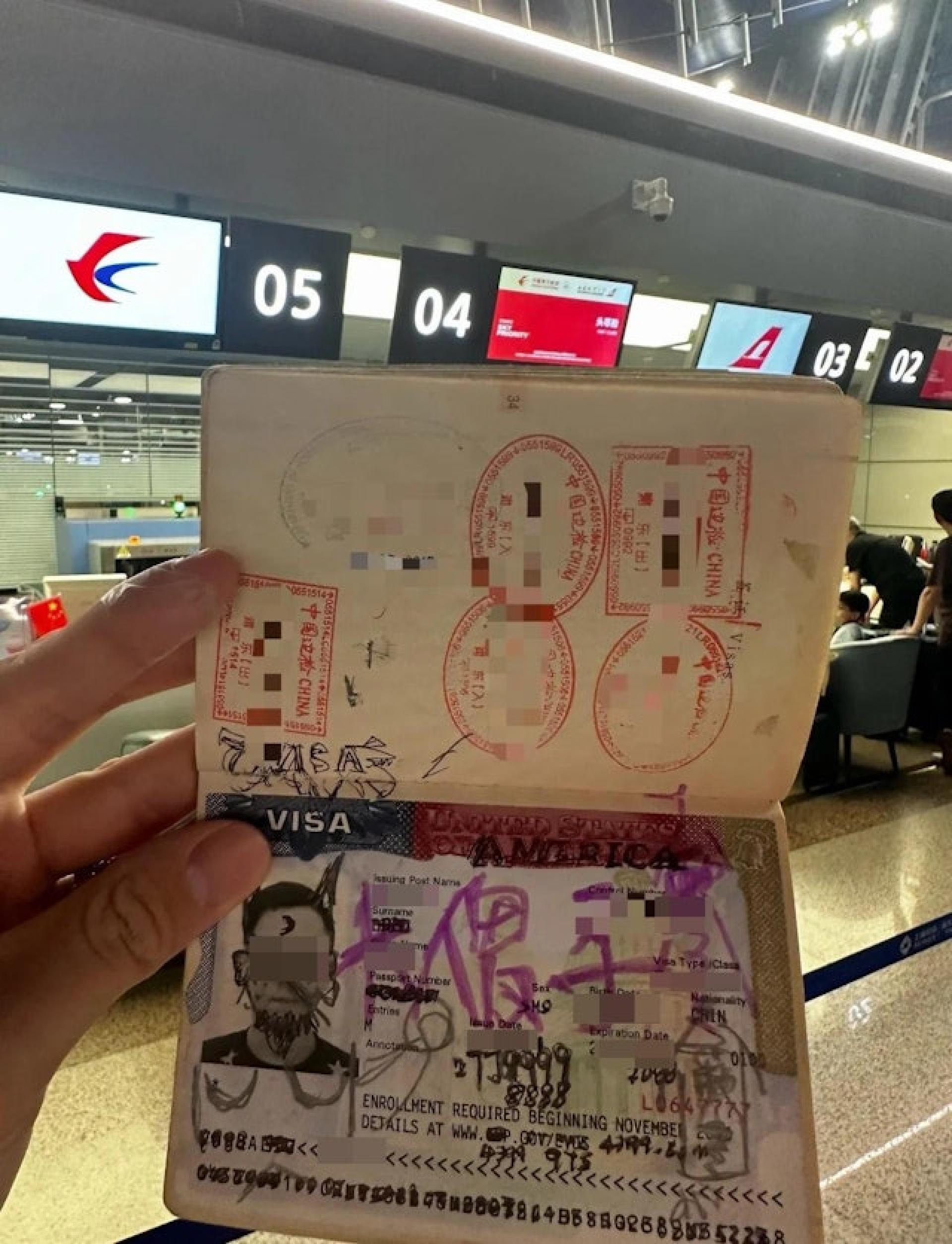 Seorang lelaki dari China berkongsi di Xiaohongshu bahawa seorang anak saudara yang sedang belajar di sekolah menengah sangat nakal. Baru-baru ini, beliau sedang bersiap untuk ke Amerika Syarikat, kemudian ke Bali, Indonesia untuk meraikan hari lahir bersama ibu bapanya. Namun, sebaik tiba di lapangan terbang dan mengeluarkan pasportnya, beliau terkejut apabila mendapati visa Amerika Syarikatnya telah diconteng sepenuhnya, malah ditulis dengan perkataan "Bodoh Besar". Kakitangan syarikat penerbangan ketawa melihat keadaan itu dan menolak kemasukan beliau ke pesawat. Setelah pulang ke rumah, beliau mendapati mata wang Rupiah Indonesia dan visa Schengen (Schengen Visa) turut menerima nasib yang sama, "tak sangka anak nakal itu meninggalkan hadiah hari lahir yang begitu 'hebat' untuk saya".