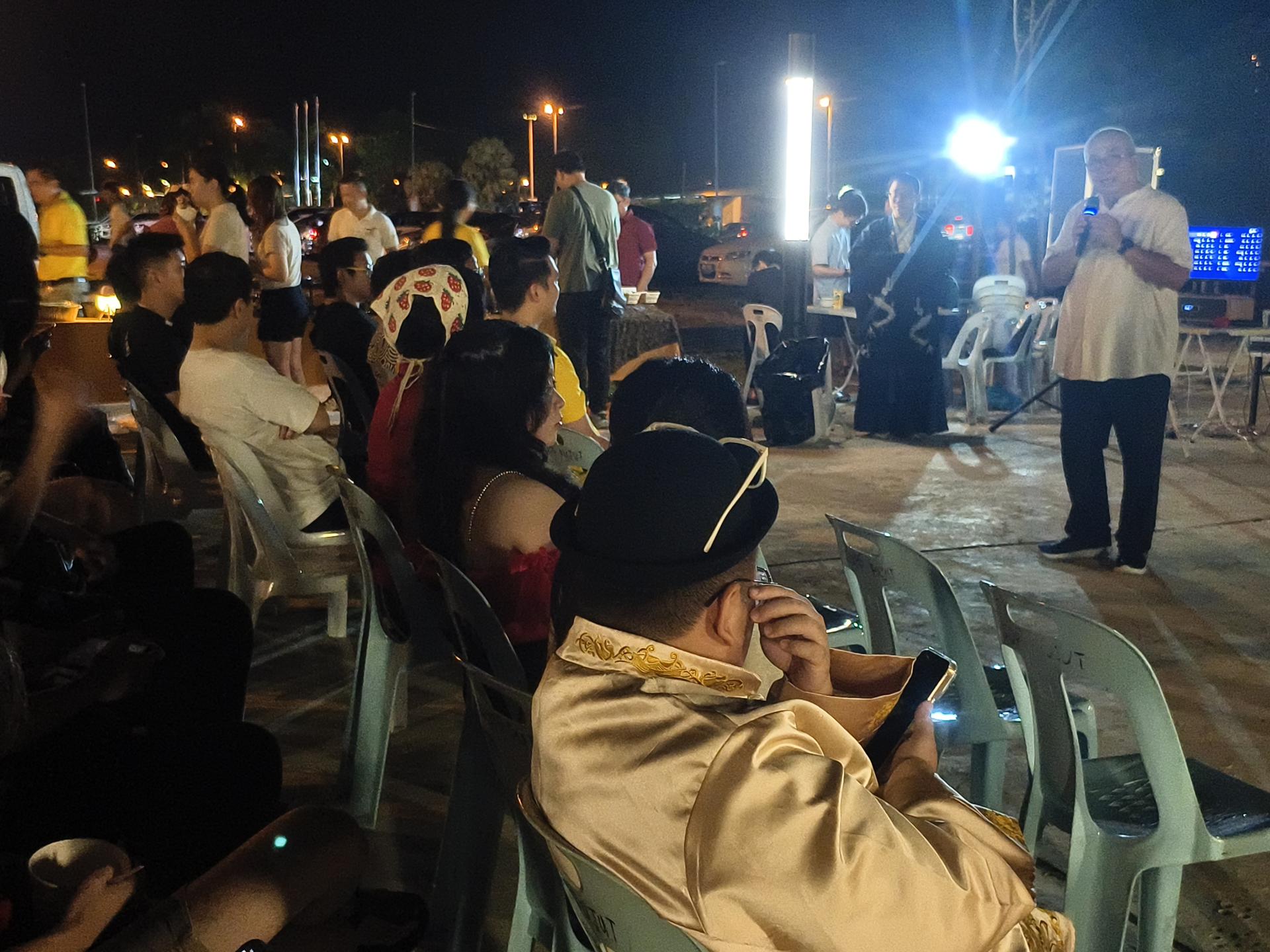 活动现场备有餐点与卡拉OK环节,大家在歌声与笑声中共庆中秋,场面热闹融洽,充分展现社区团结与节日气氛。