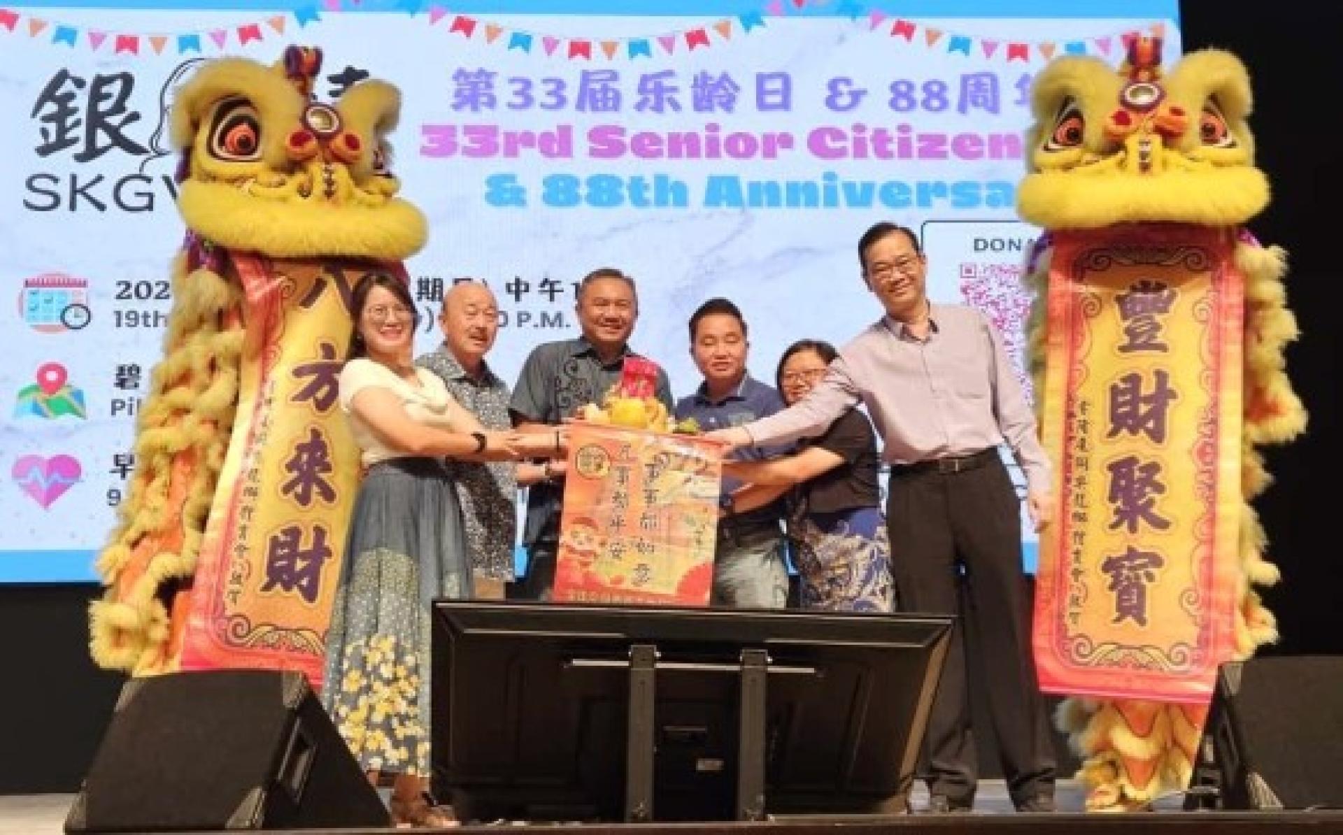 雪兰莪英皇乔治五世银禧老妇院基金信托人向醒狮接青。左起为王诗棋、杨星耀、黄思汉、黄瑞林、李燕韵及杨龙展。 黄思汉也雪兰莪英皇乔治五世银禧老妇院基金信托人,他今日出席第33届乐龄日及银禧老妇院88周年庆典午宴时,如是指出。