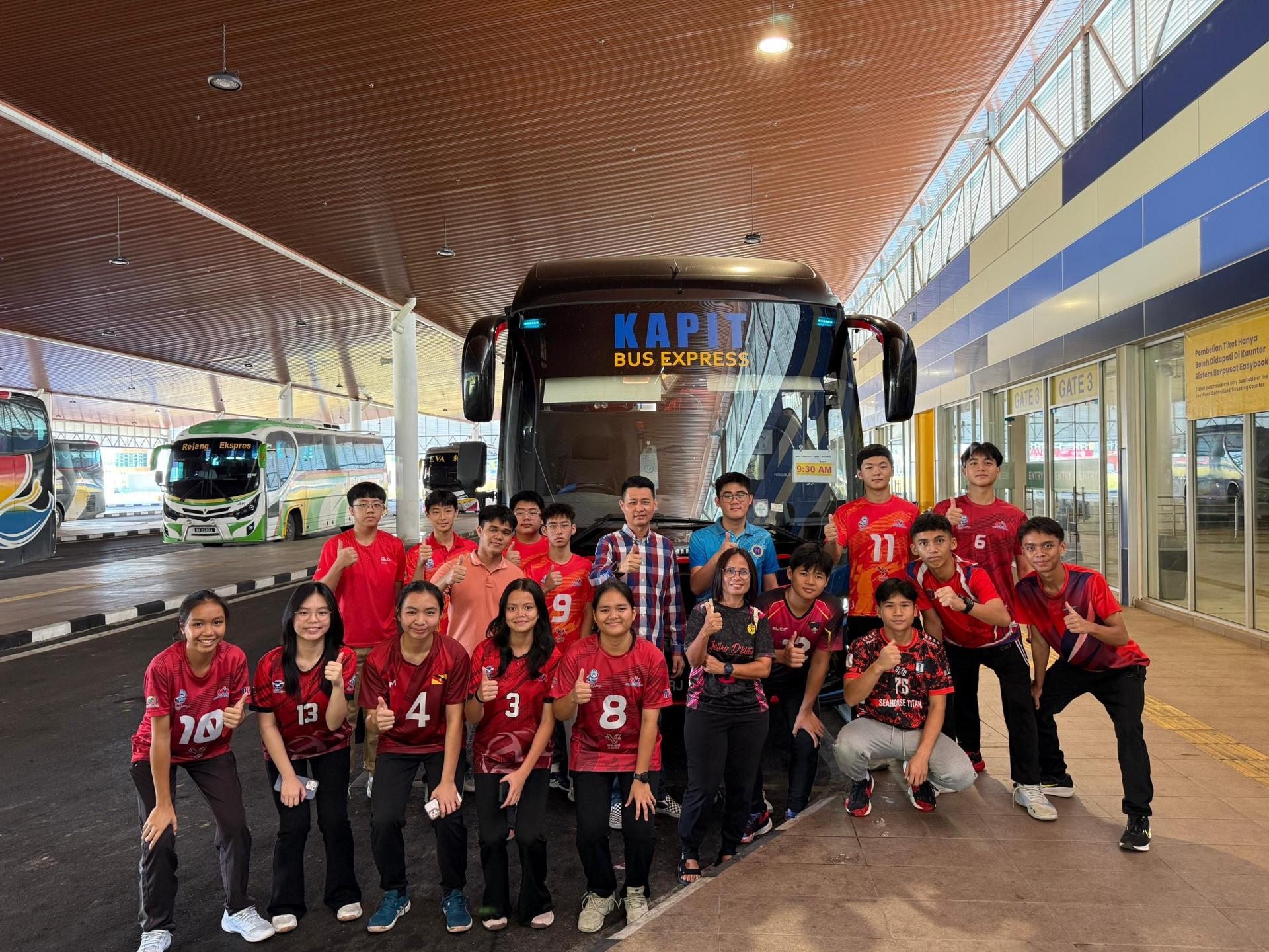 会长林思健(后排右边4)也前往长途巴士站欢送部分球员,并合影。后排右3为其中一名教练黄勇程。 “每一次代表美里出队都不容易。为了让球员们有球可打、持续接受训练,排总理事们长期投入大量心力筹募经费。一切都是为了让你们能站在球场上发光。”