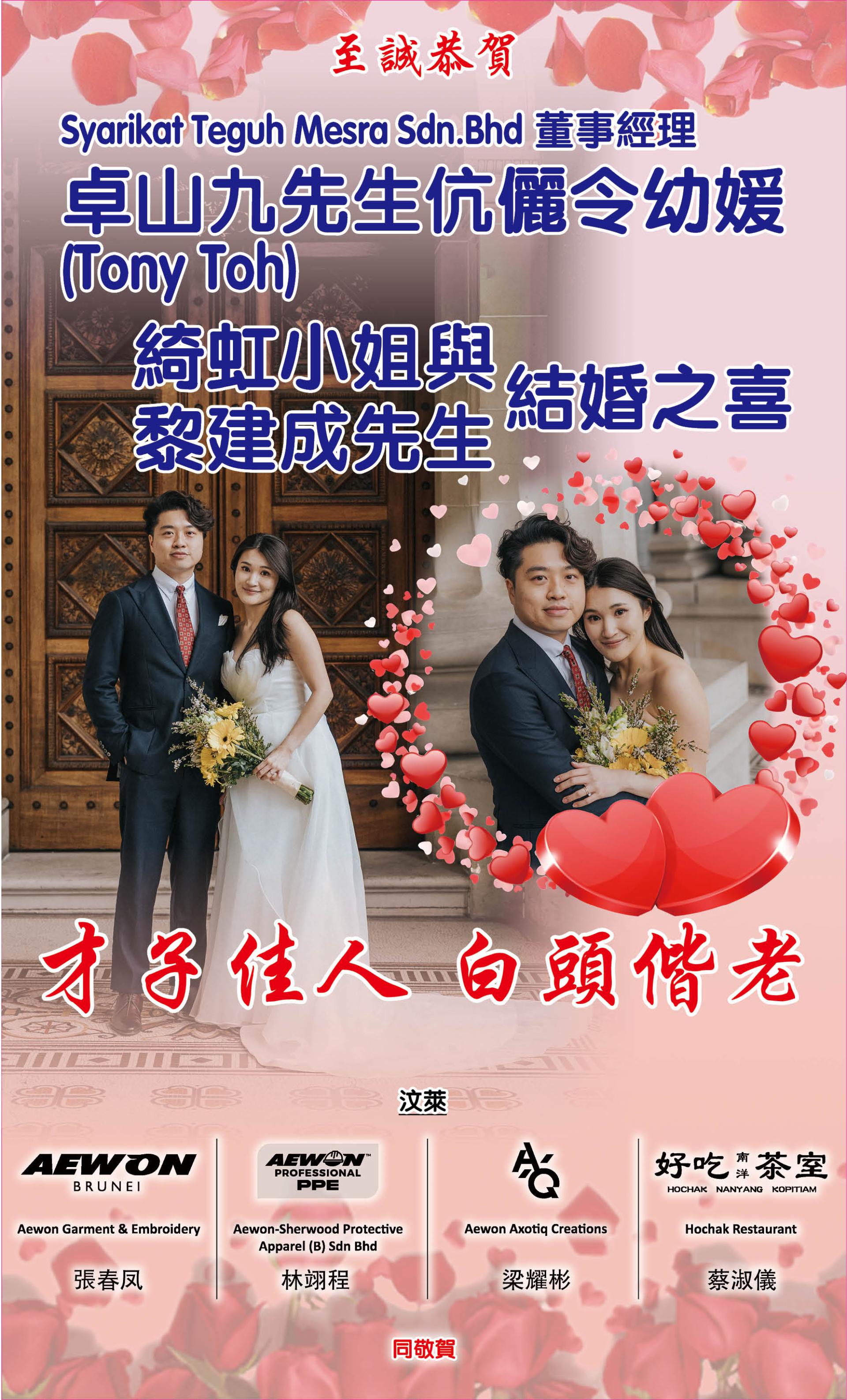 【贺词】黎建成先生与卓綺虹小姐结婚之喜