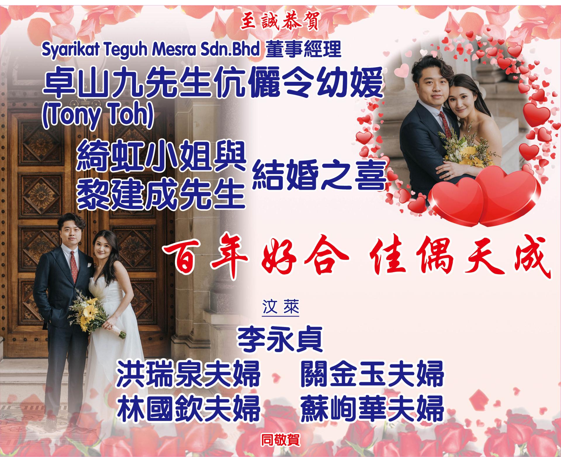 【贺词】黎建成先生与卓綺虹小姐结婚之喜