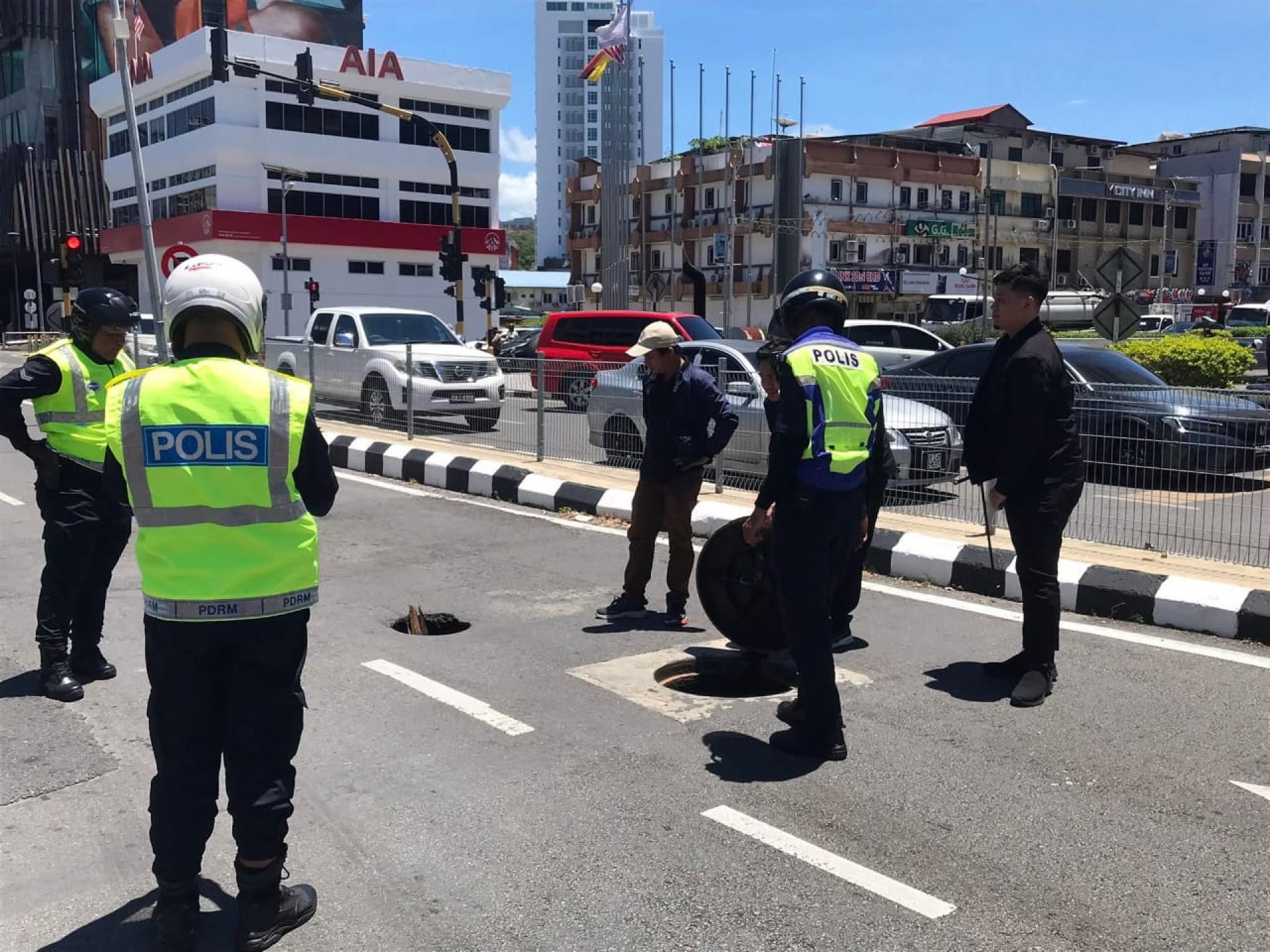 有关路段已即时封锁,交通暂时改道至左侧美里清真寺小路。市政局工程部随即安排洋灰车到场填补深坑。
