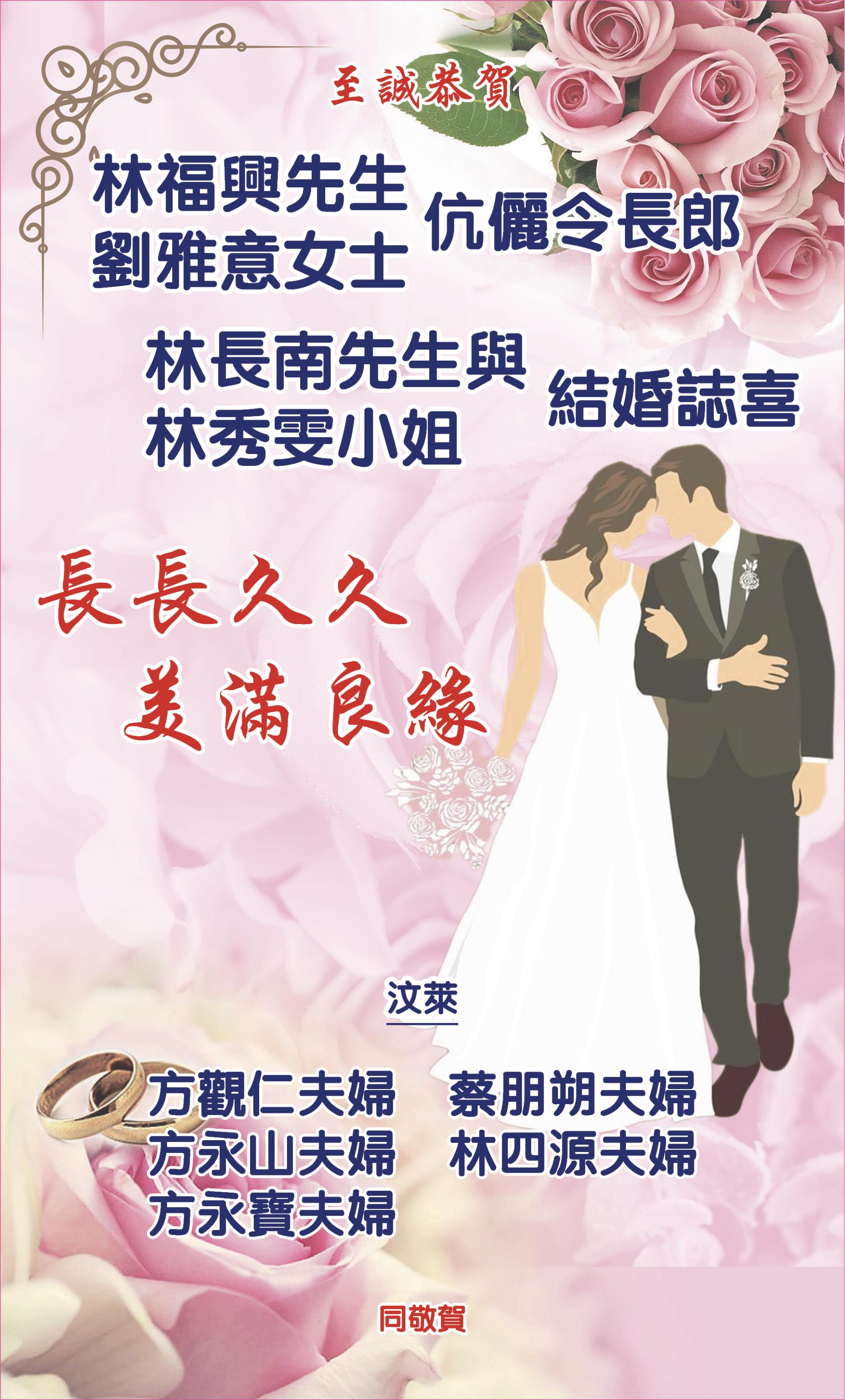 【贺词】林長南先生与林秀雯小姐结婚之喜