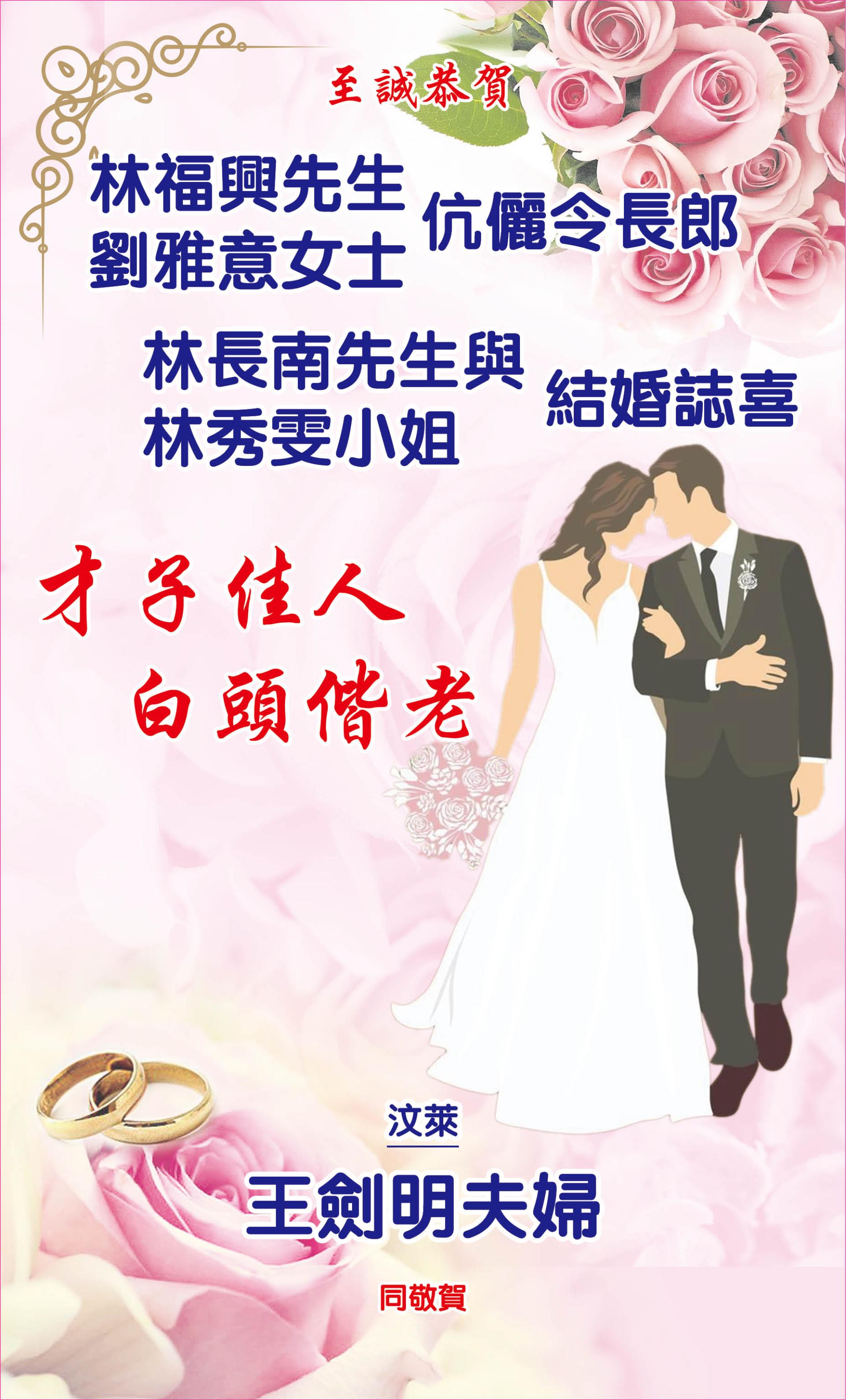 【贺词】林長南先生与林秀雯小姐结婚之喜