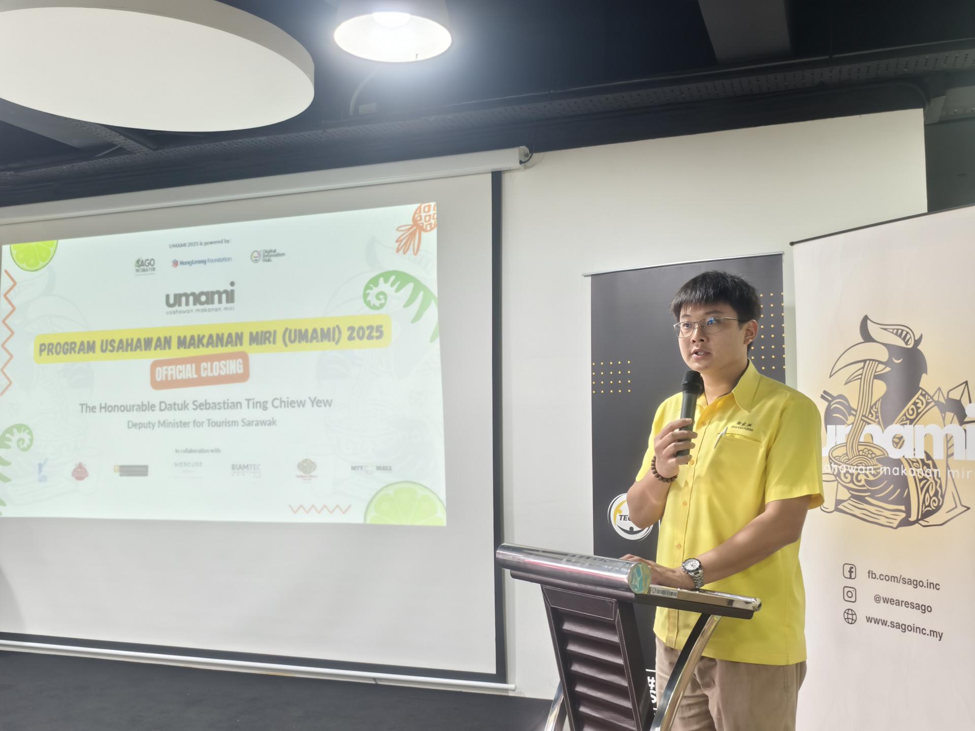 砂旅游部副部长拿督陈超耀无法亲临出席 UMAMI 2025 结业典礼,由机要秘书谢家洪代为宣读讲稿。