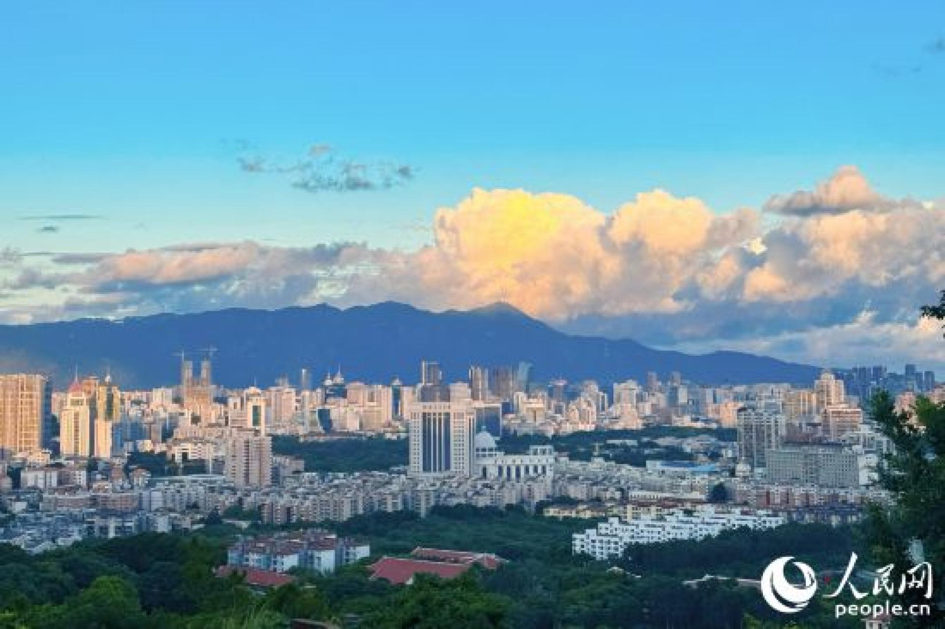 在福山郊野公园登高,俯瞰福州城区。人民网 刘橦洁摄