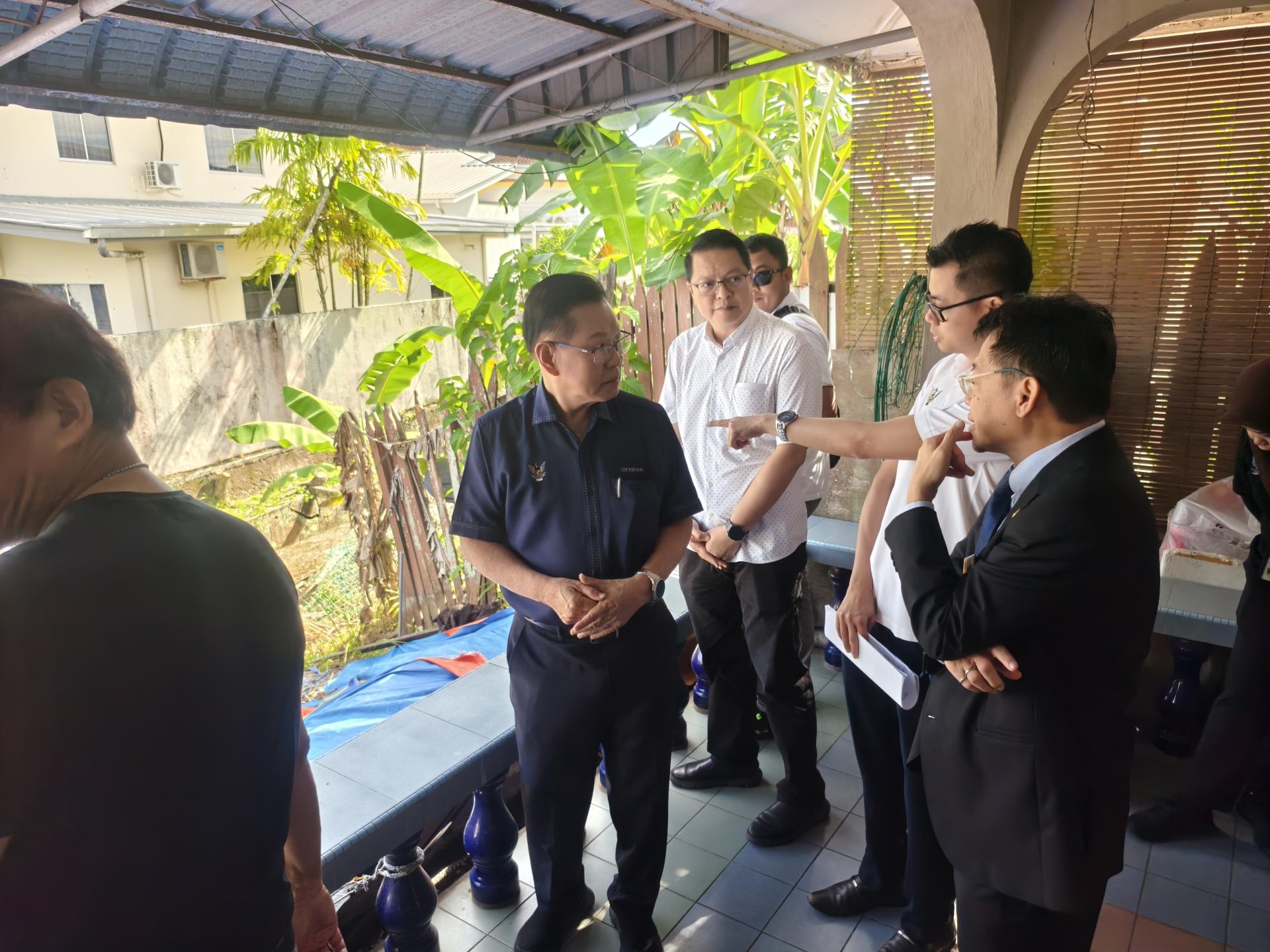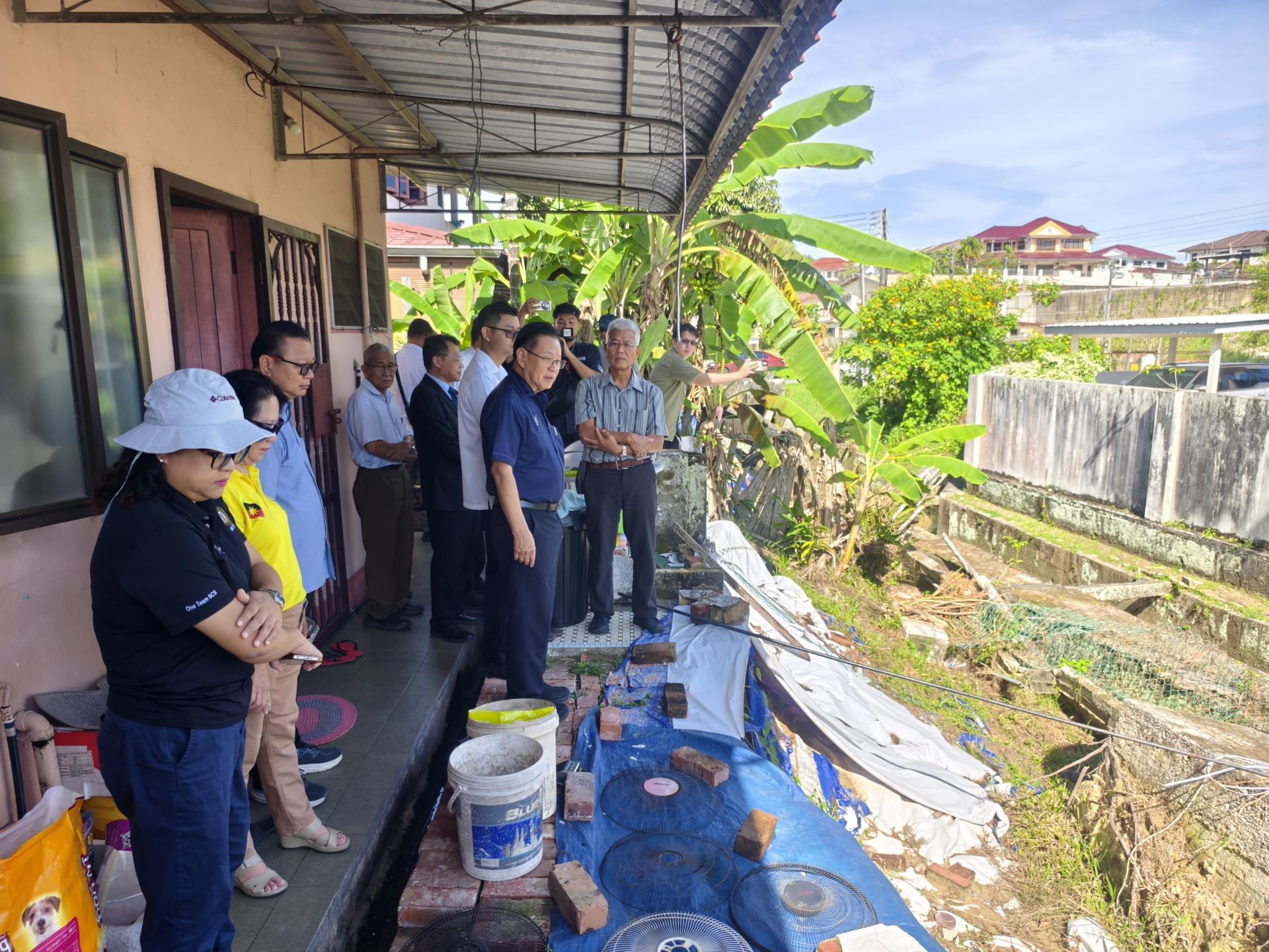 李景胜今早前往山顶花园3路A巷巡视洛257、258与259三住家了解崩墙沟渠情况后向媒体指出,当地居民曾致函向他求助,他随即向当局争取灾难特别基金,最终获得批准。