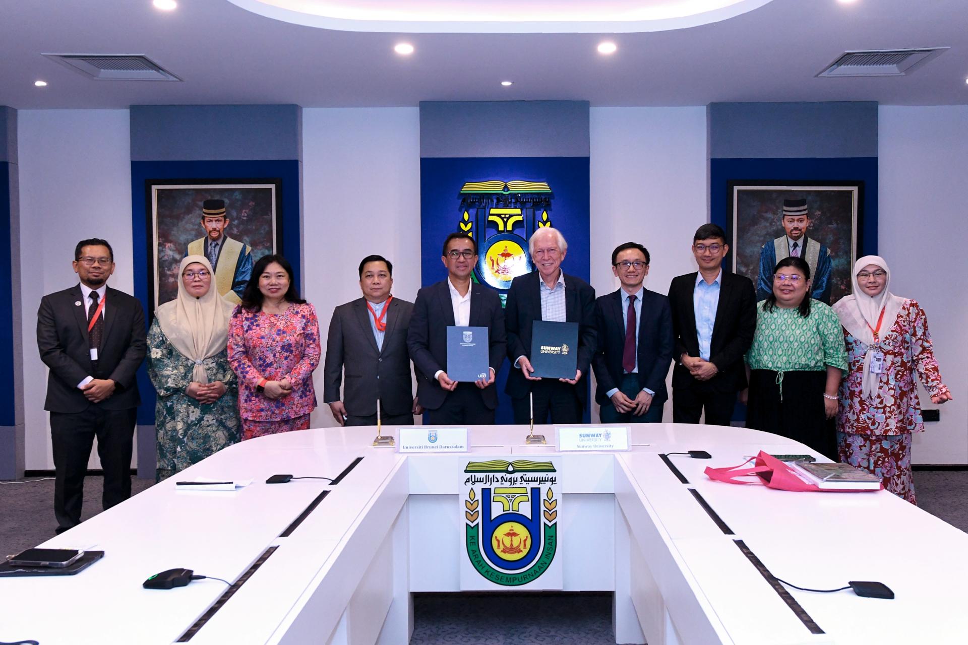 (Bandar Seri Begawan, 13 Jun) Universiti Brunei Darussalam (UBD) dan Universiti Sunway Malaysia secara rasmi menandatangani Memorandum Persefahaman (MoU) pada 22 Oktober 2025, membuka lembaran baharu dalam hubungan kerjasama kedua-dua universiti. Memorandum tersebut ditandatangani oleh Naib Canselor UBD, Dr. Hazri dan Presiden merangkap Naib Canselor Sunway, Profesor Sibrandes, disaksikan oleh beberapa wakil kanan dari kedua-dua belah pihak.